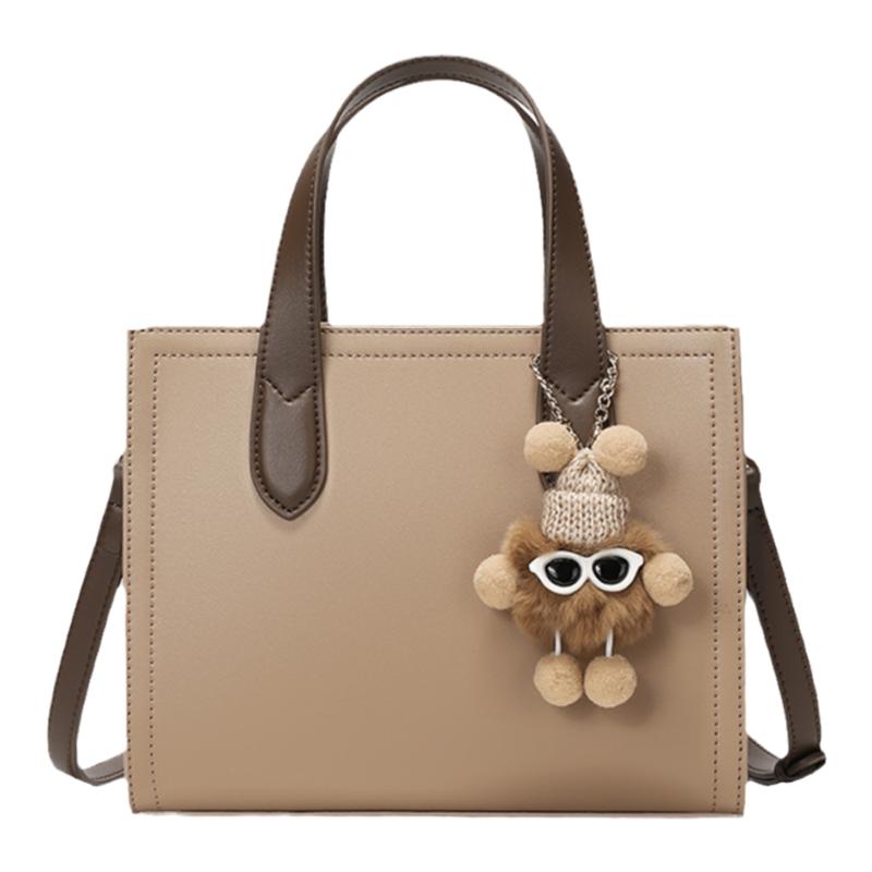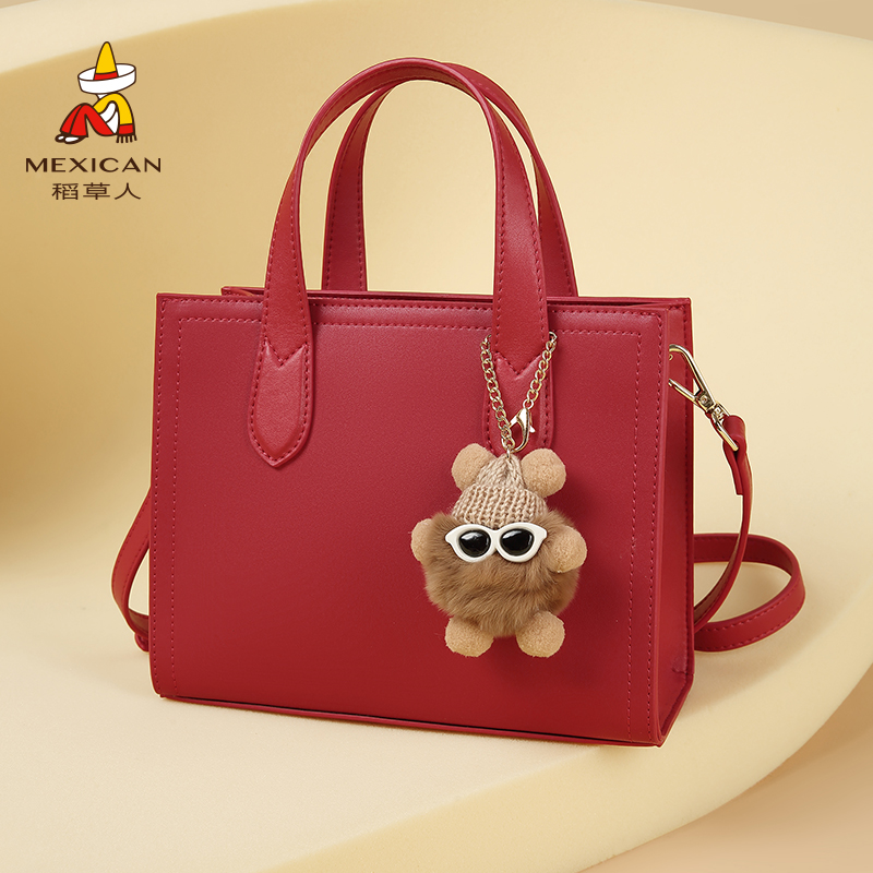 稻草人手提包女2025新款真皮包包时尚撞色斜挎包挂饰牛皮单肩女包