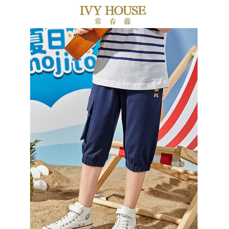 IVY HOUSE常春藤儿童装男童七分裤夏季款 平织休闲松紧腰中裤百搭