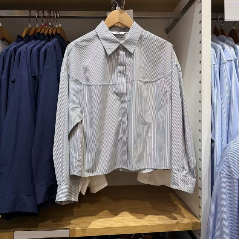 女装棉质条纹短款衬衫长袖空调衫休闲百搭2025新款479678/480485