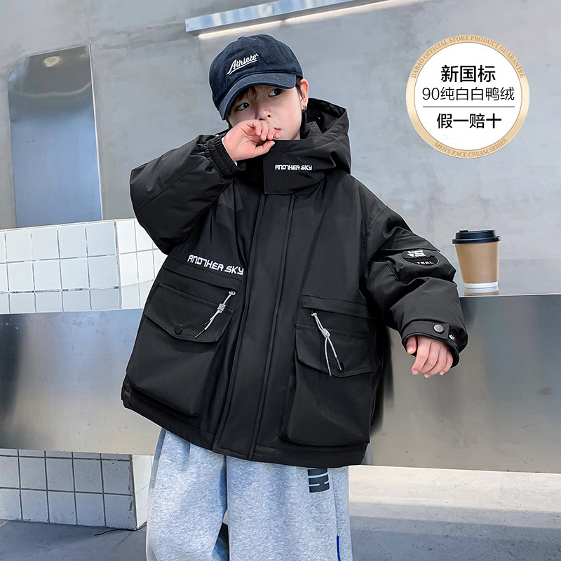 男童白鸭绒工装羽绒服冬装2024新款中大童装加厚连帽外套