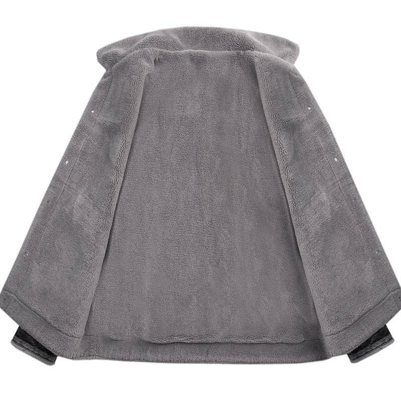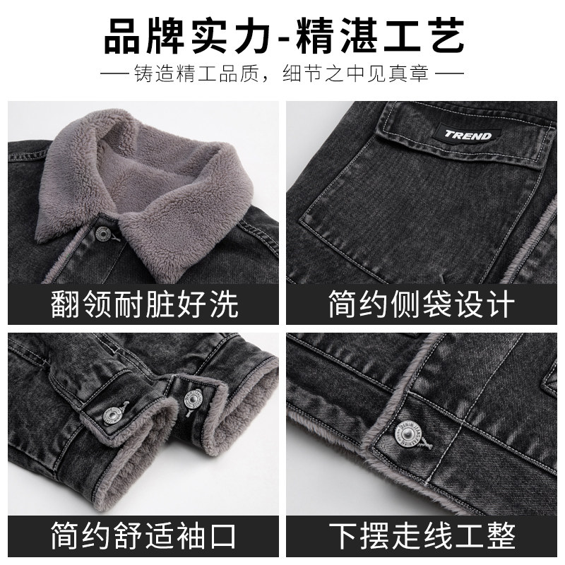 罗蒙秋冬季加绒牛仔外套男士加厚保暖翻领上衣潮牌工装休闲夹克男