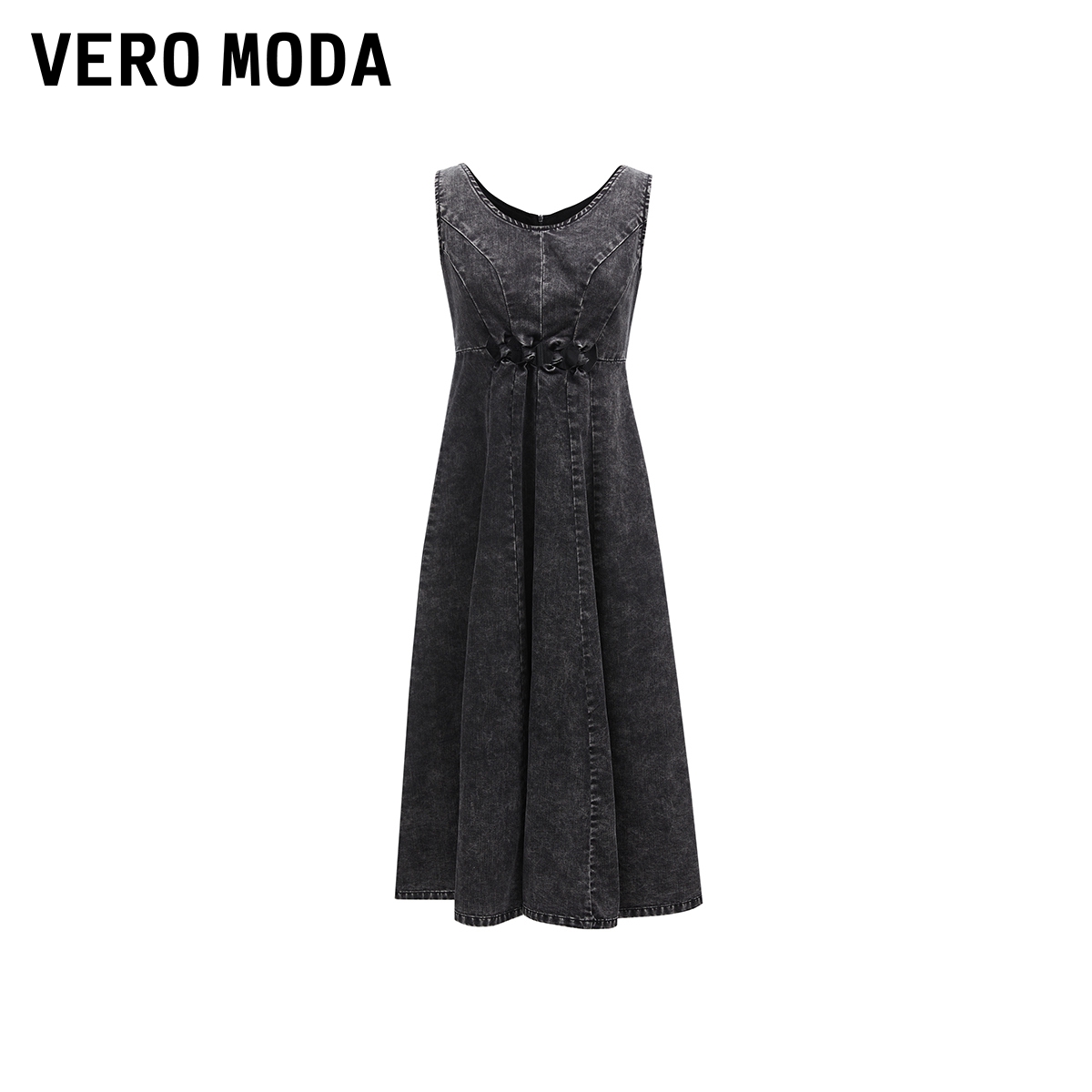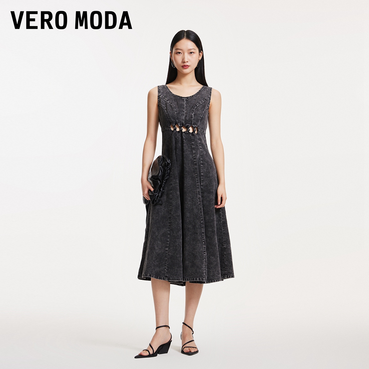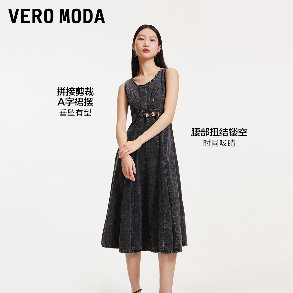 Vero Moda奥莱连衣裙秋季新款腰部镂空拼接无袖显瘦牛仔裙子流行