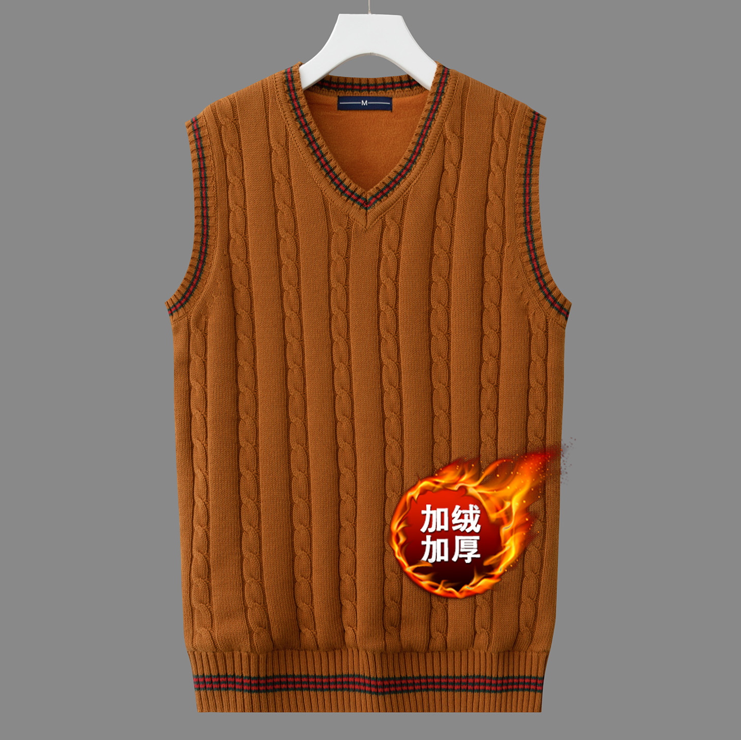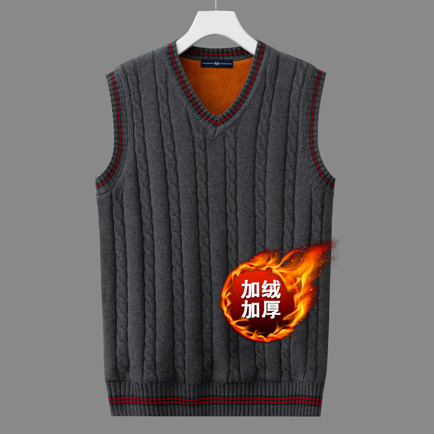 冬季加绒加厚毛背心男士韩版修身无袖针织衫马甲青年V领毛衣背心