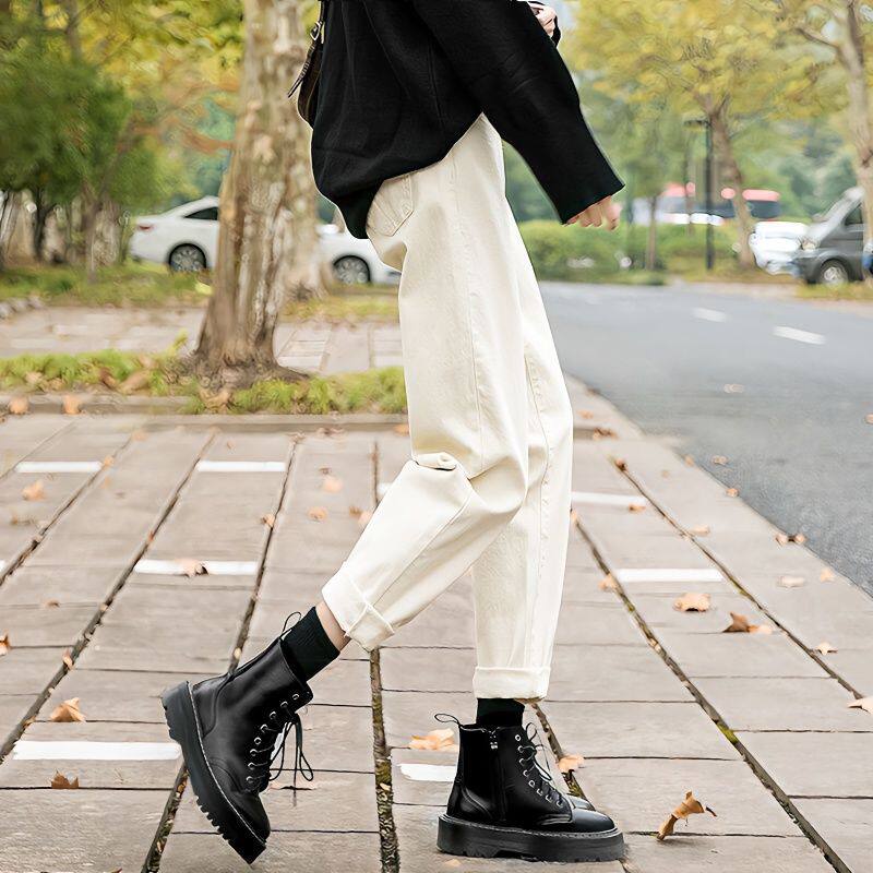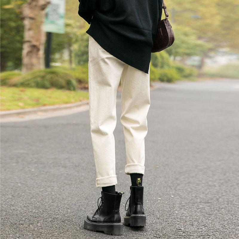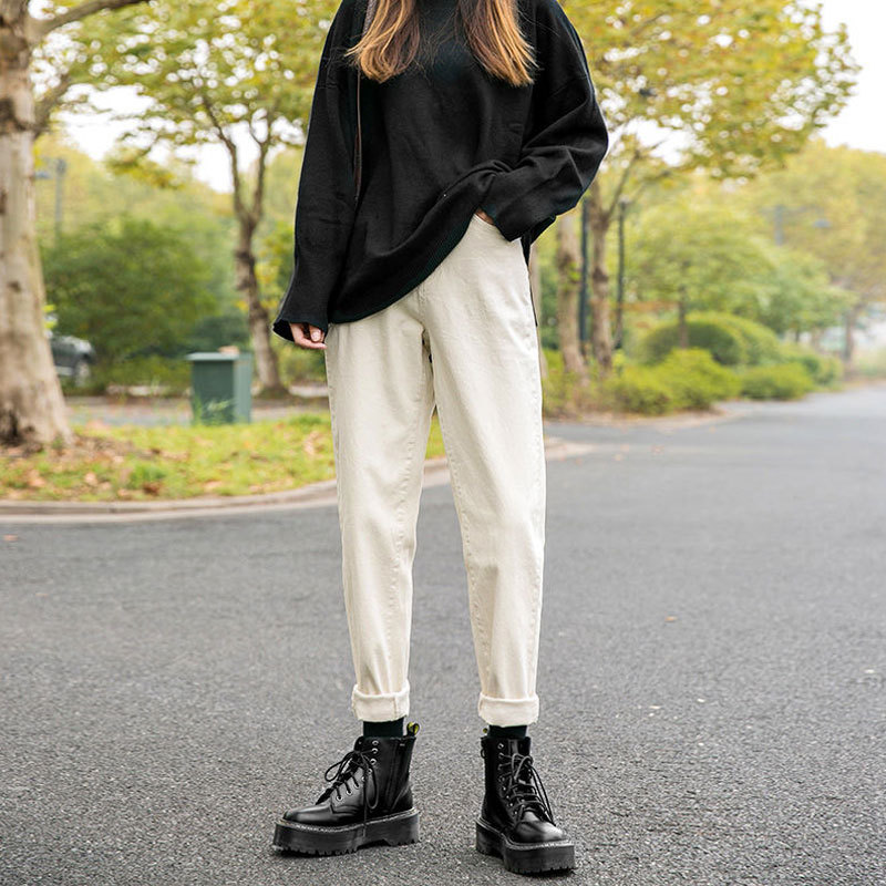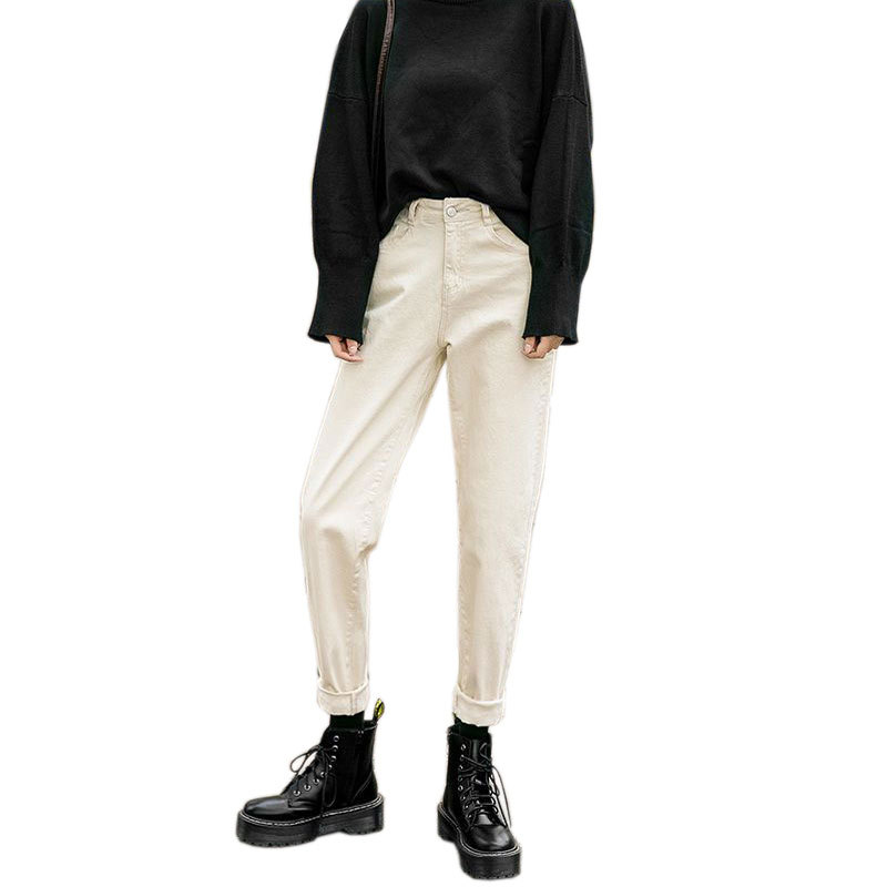 杏色直筒牛仔裤女新款高腰显瘦哈伦裤时尚休闲九分萝卜老爹裤子潮
