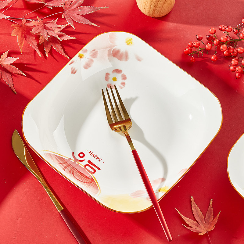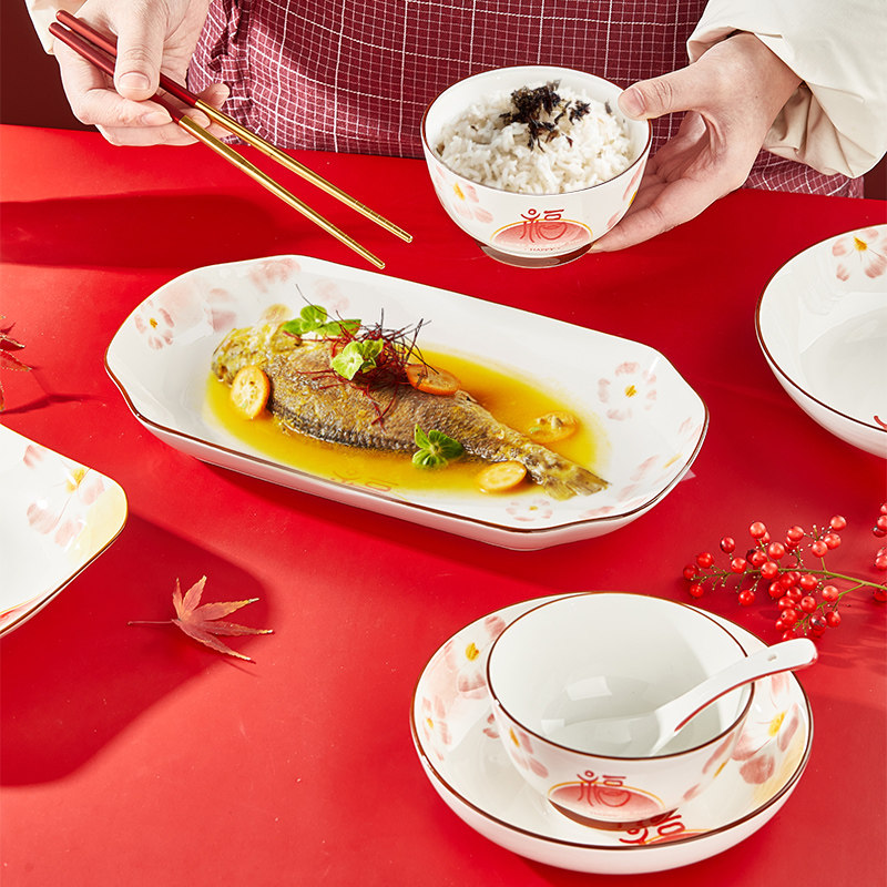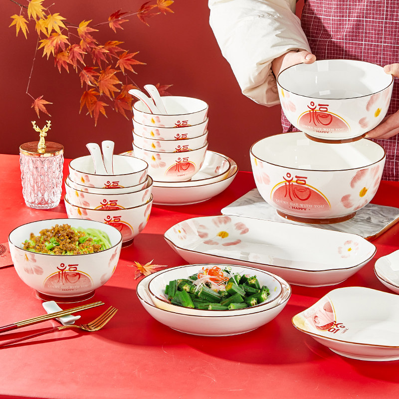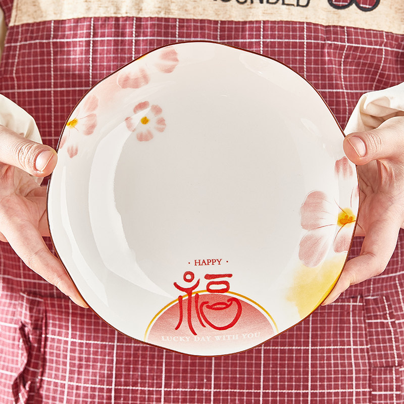 盘子菜盘家用釉下彩过年餐具炒菜深盘2025新款福字碗碟套装可微波