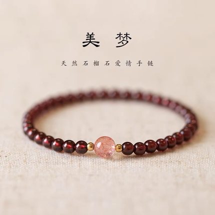 正品天然石榴石手链女草莓晶转运珠酒红石榴石手串女好运礼物饰品