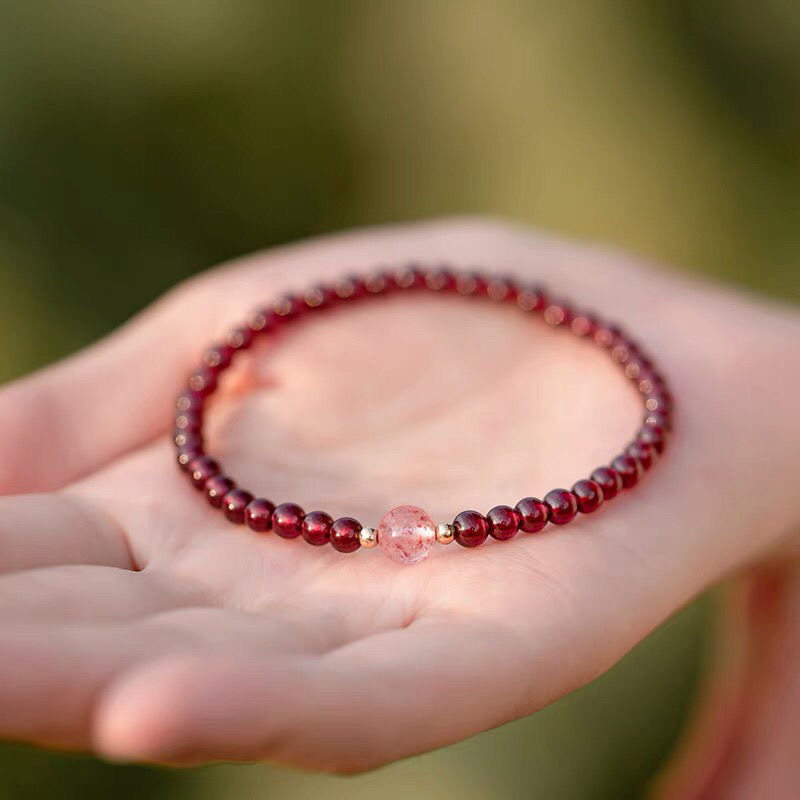 好运天然酒红石榴石转运珠手链女