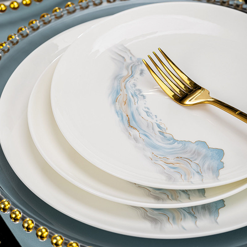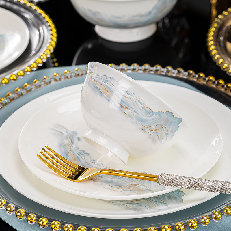 景德镇陶瓷器骨瓷餐具碗碟套装家用轻奢高档金边碗盘组合