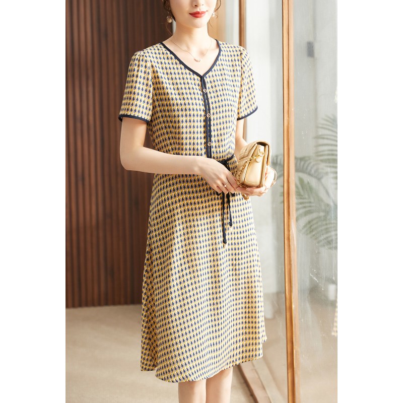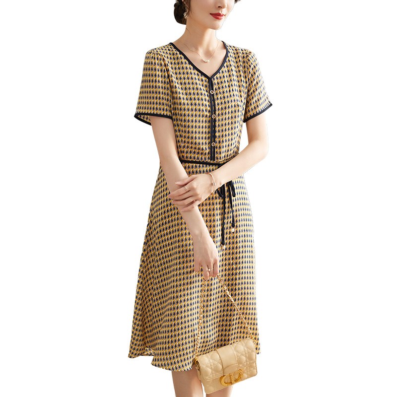 年轻妈妈夏装连衣裙洋气质雪纺裙中老年女士夏季40岁50收腰长裙子