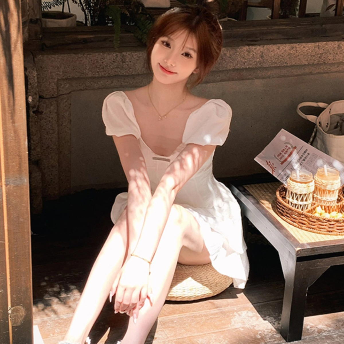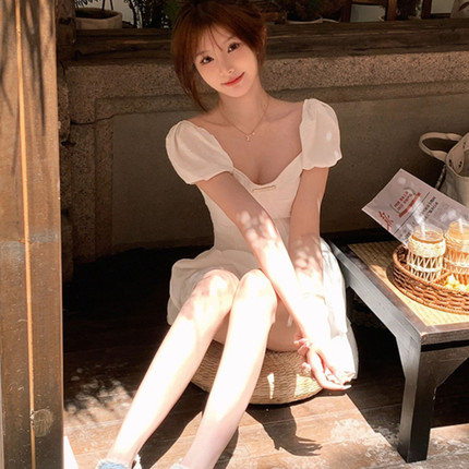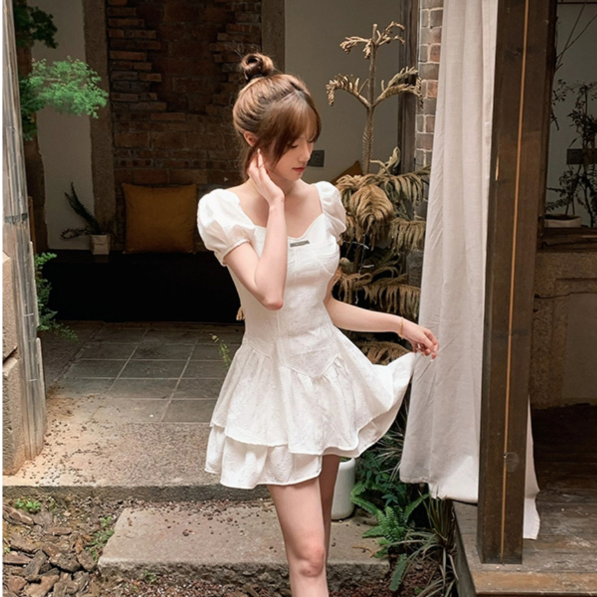 小个子修身显瘦泡泡袖公主蛋糕连衣裙子女小众设计2025年新款夏季