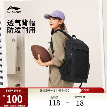 李宁双肩包男女2026新款大容量旅行轻便背包学生电脑书包运动包