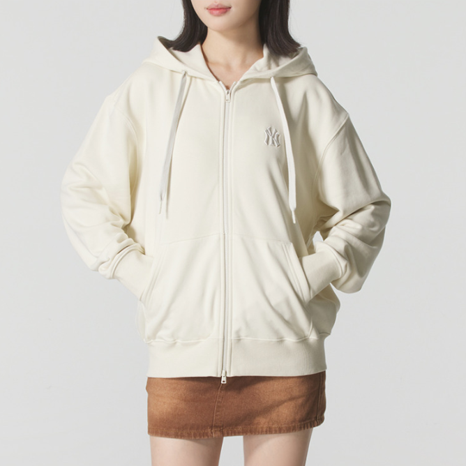 MLB正品新款春秋男女同款针织连帽logo百搭时尚夹克外套3ATRB0154