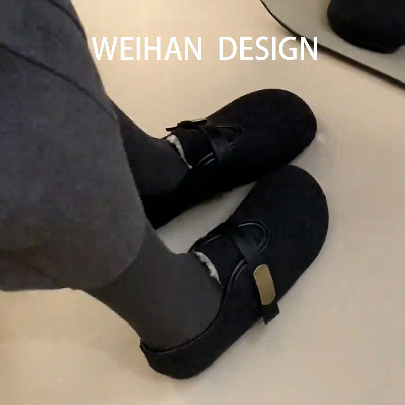 羊皮版!圆头加绒复古休闲毛毛鞋