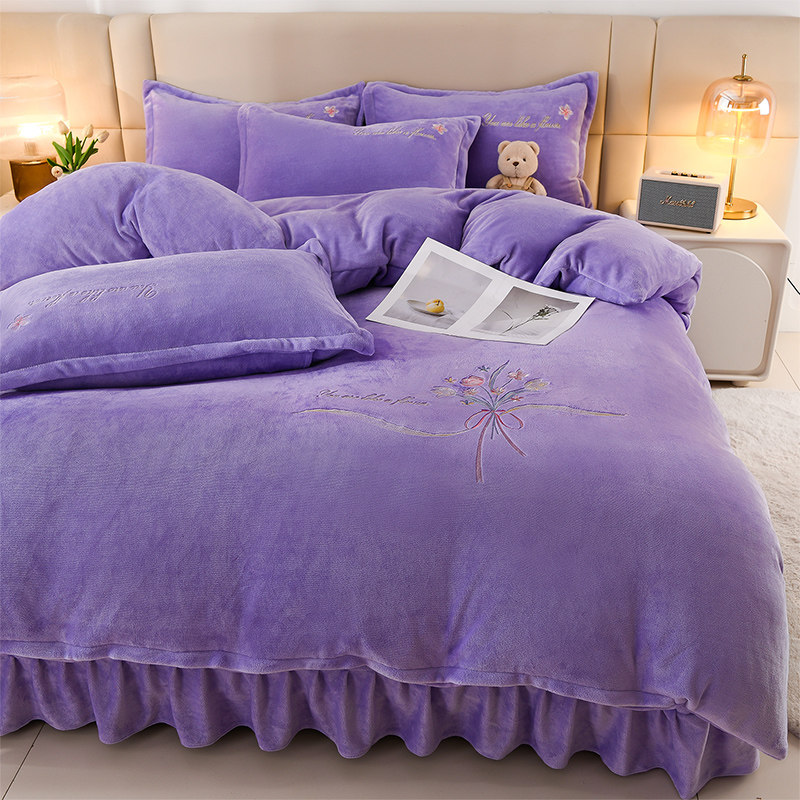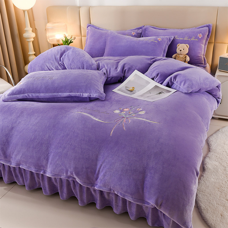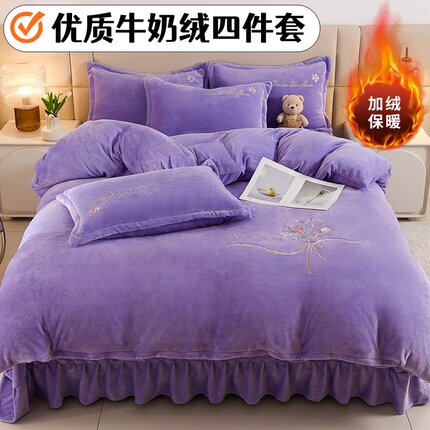 高端加厚牛奶绒四件套2025新款冬季法兰绒珊瑚绒被套床裙床上用品