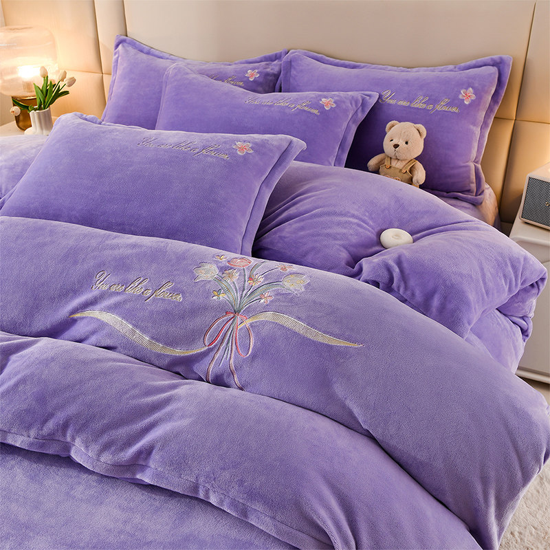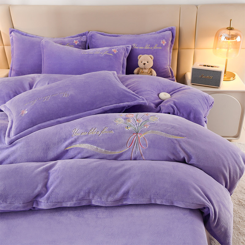 高端牛奶绒四件套加密加厚绒保暖