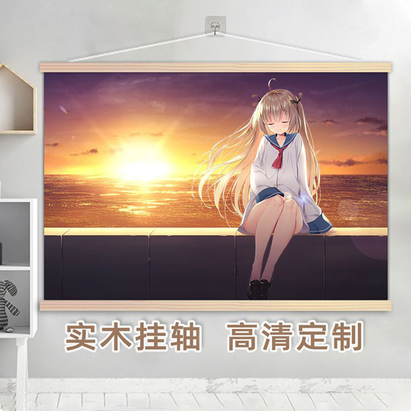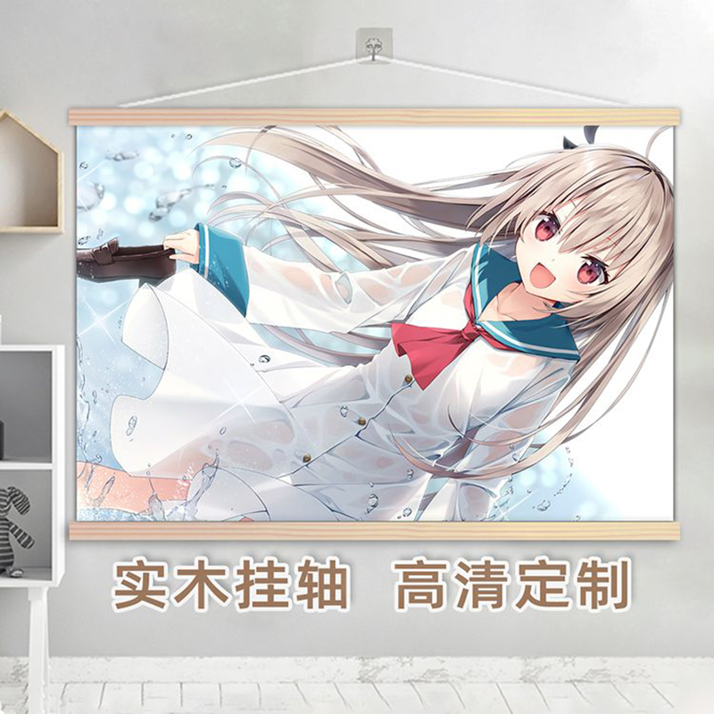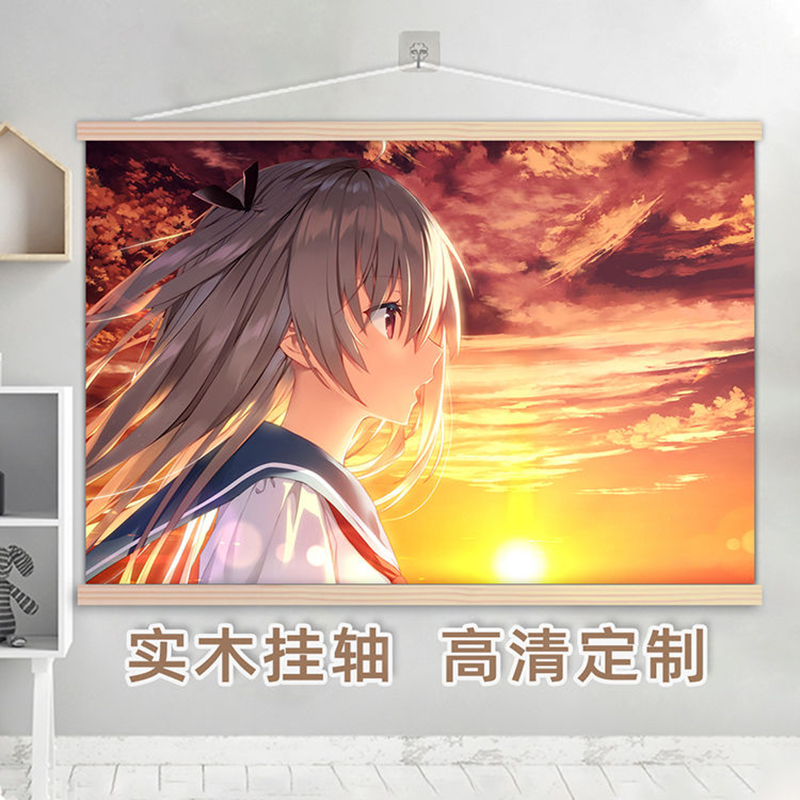 亚托莉周边挂画实木二次元动漫布艺挂轴海报木质来图定制装饰画