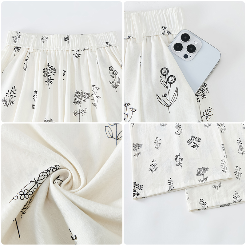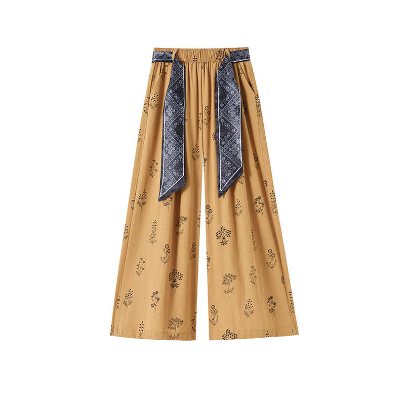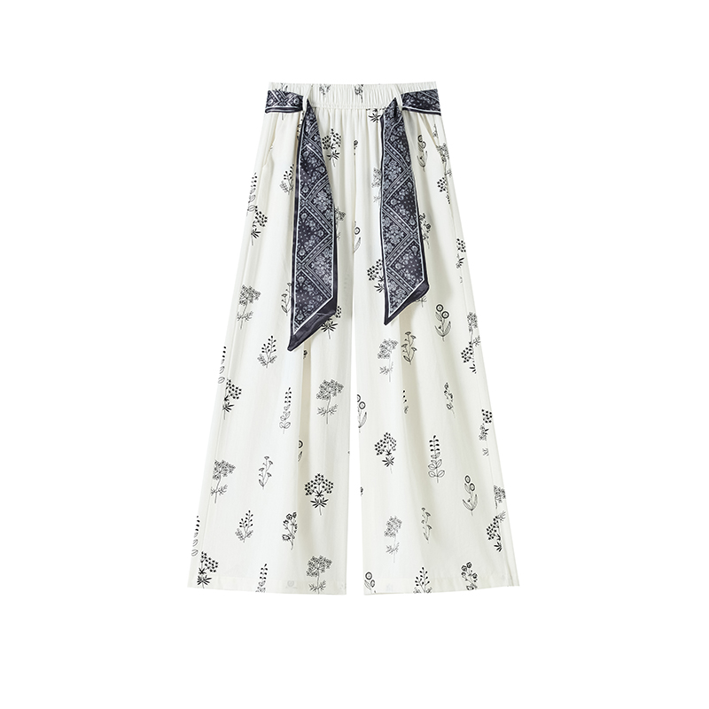 冰丝印花阔腿裤子女夏季新款高腰显瘦宽松直筒休闲棉麻九分裤2401