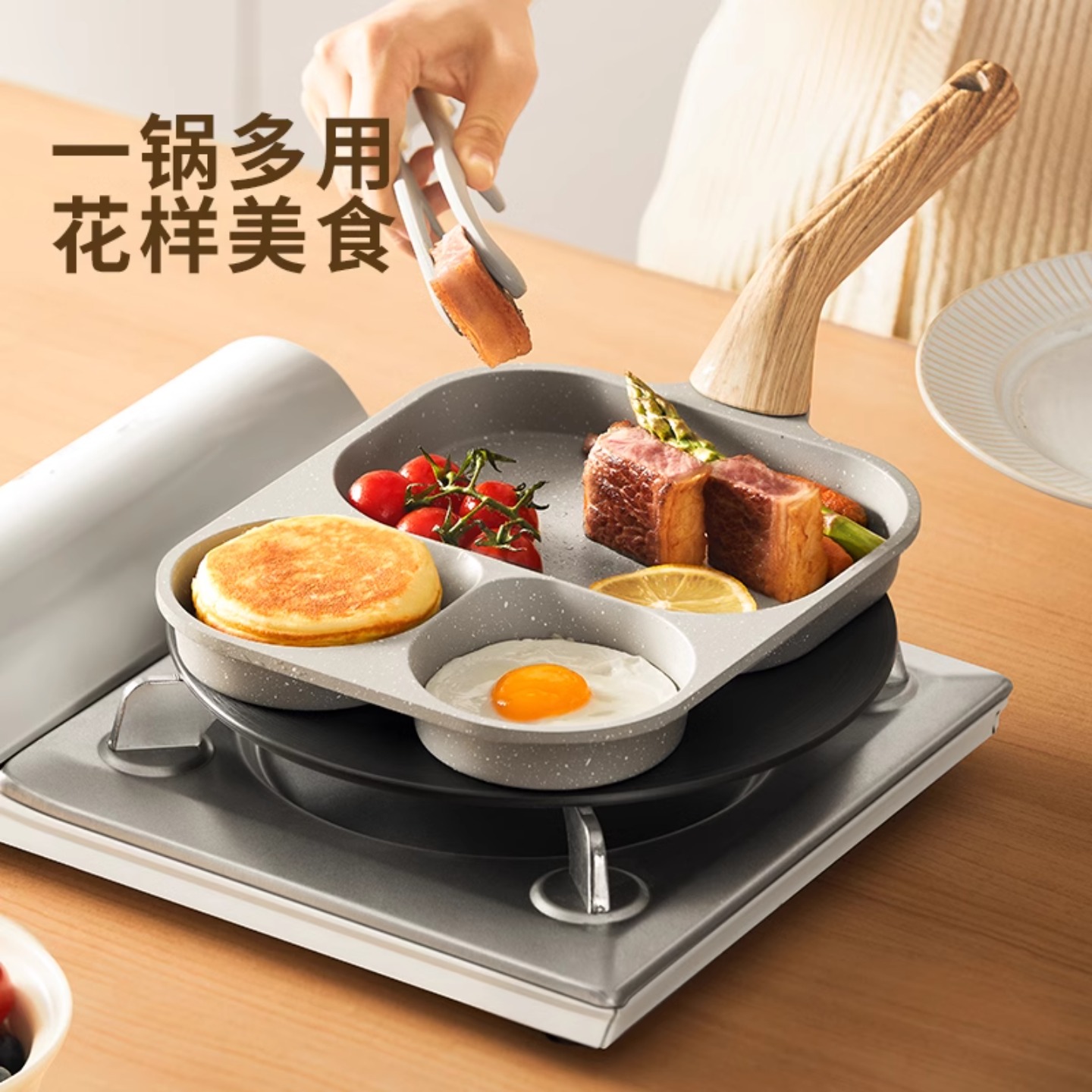 九阳儿童早餐锅三合一煎蛋锅鸡蛋汉堡多功能家用不粘煎锅平底锅