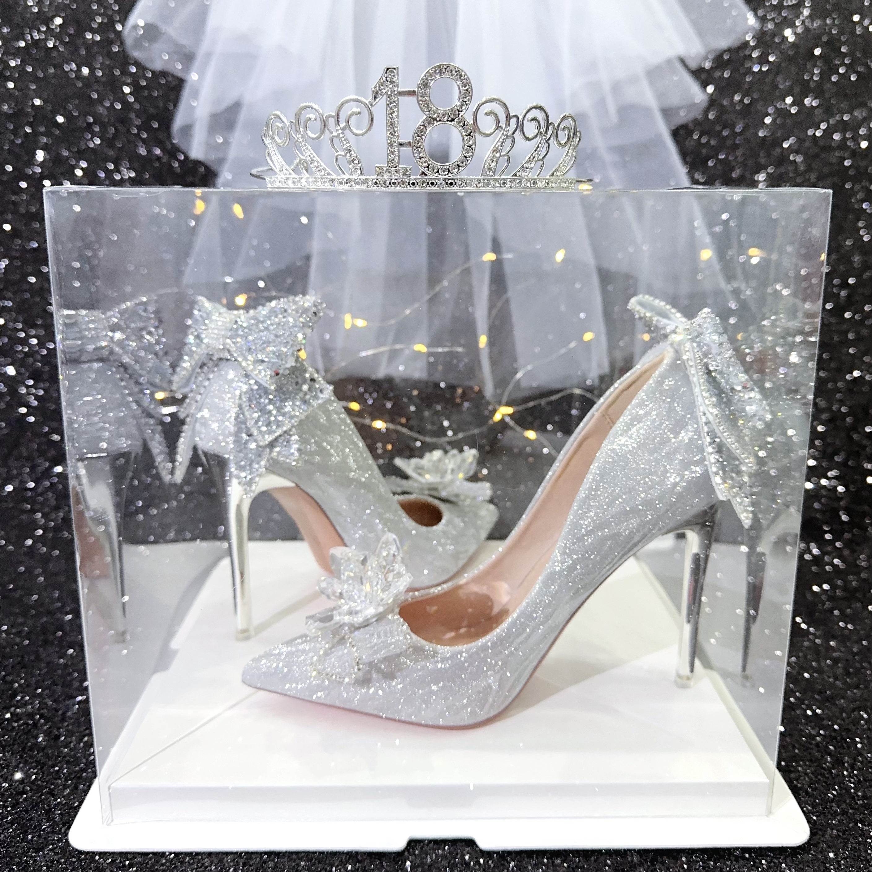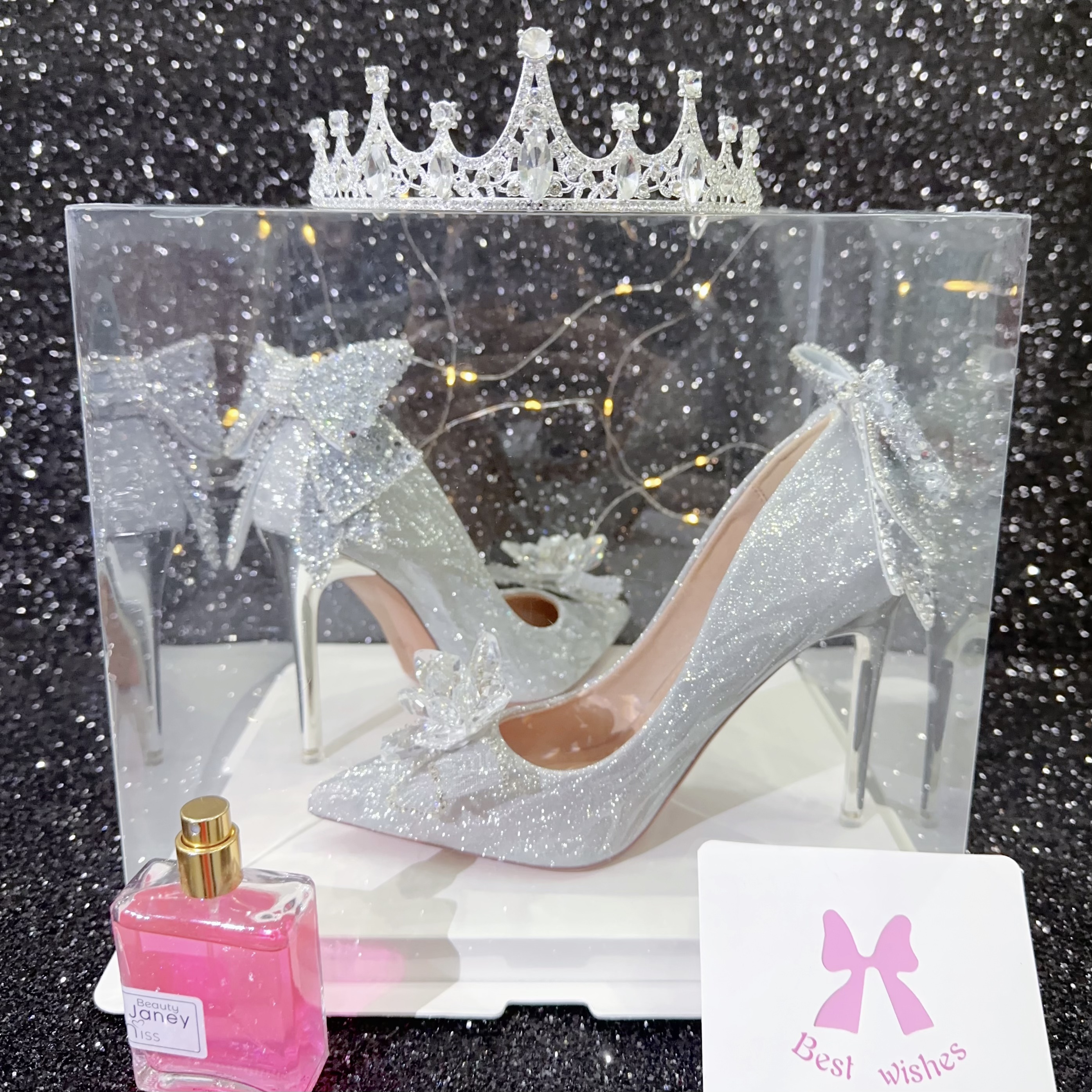 2025新款婚鞋秀禾婚纱两穿新娘水晶鞋女成年礼绝美细跟水钻高跟鞋