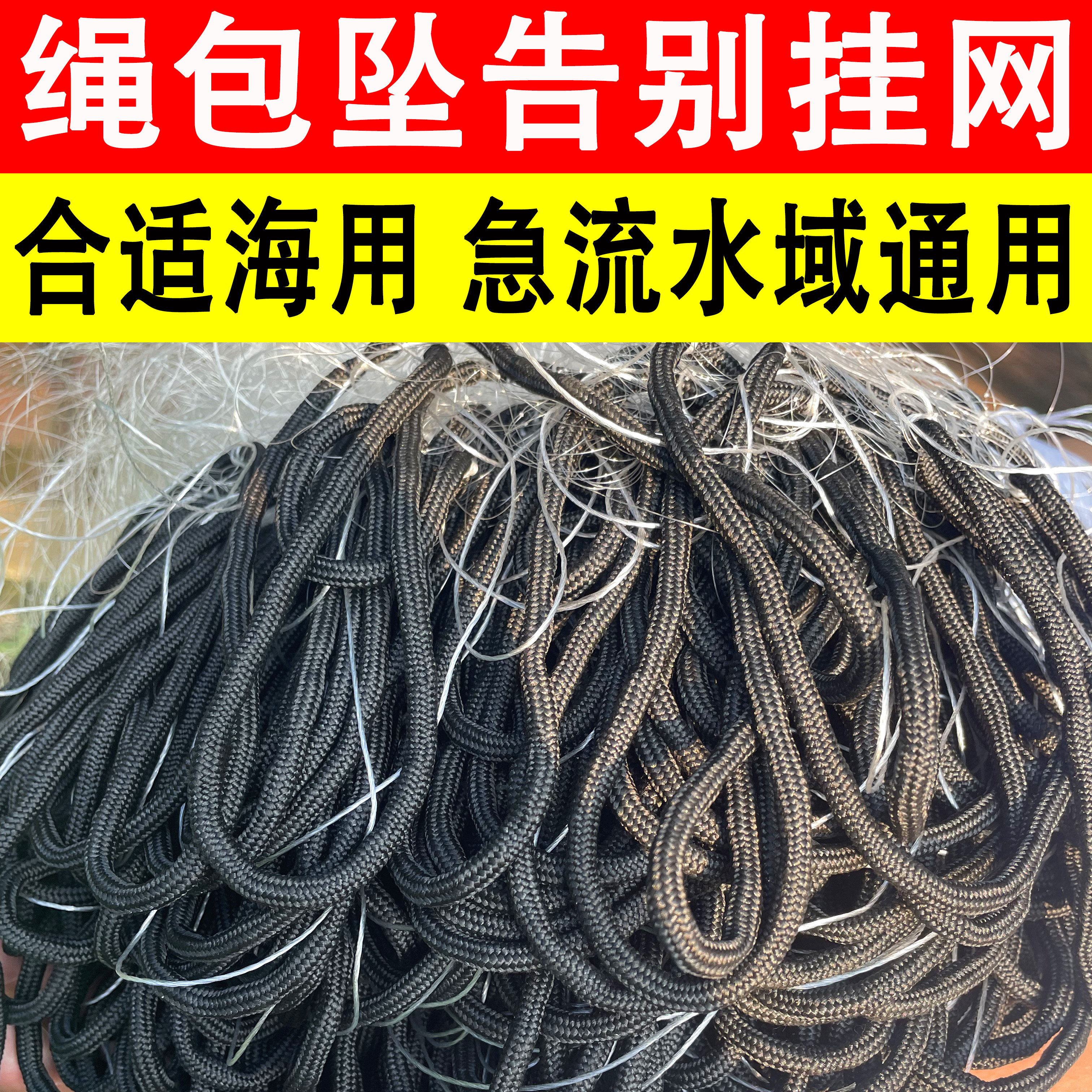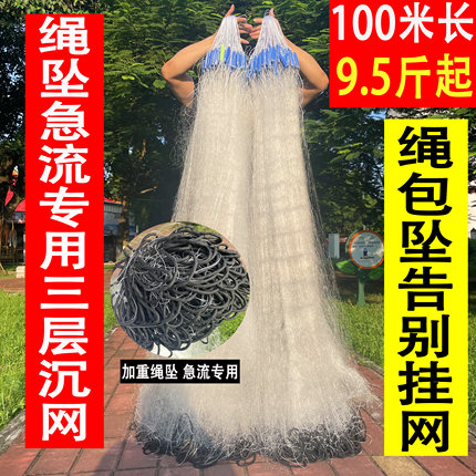 加重绳包坠急流专用三层沉网渔网 加强丝鱼网粘网丝网捕鱼网100米