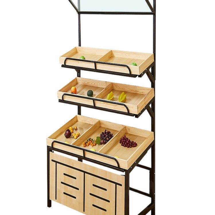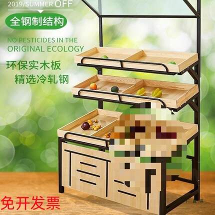 超市水果货架果蔬架置物架蔬菜架钢木架中岛展示台商用摆果框木质