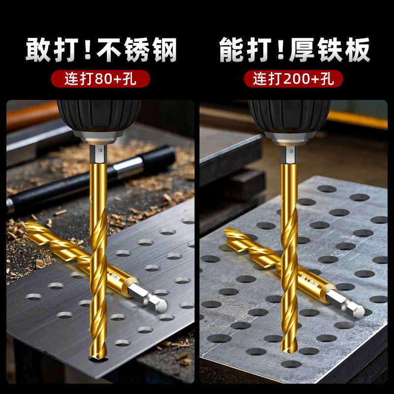 镀钛六角柄麻花钻不锈钢专用钻头高硬度打孔钢铁钻钢钨钢合金转头