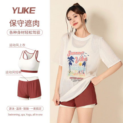泳衣女分体泡温泉套装三件套2025新款大码保守遮肚显瘦度假游泳衣