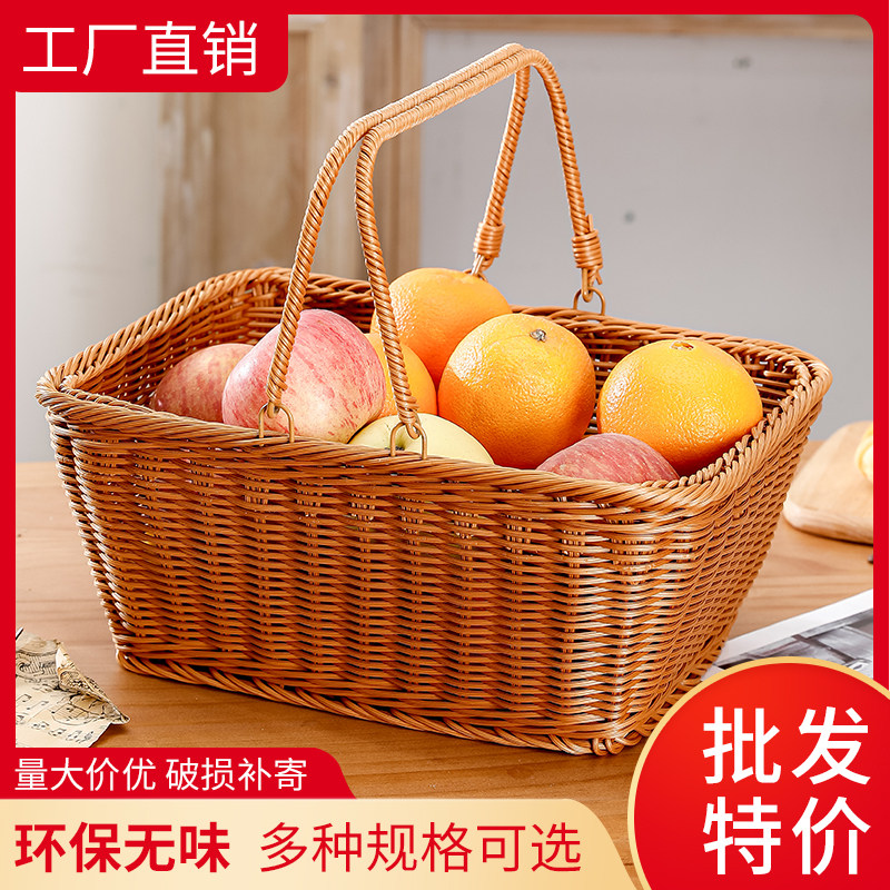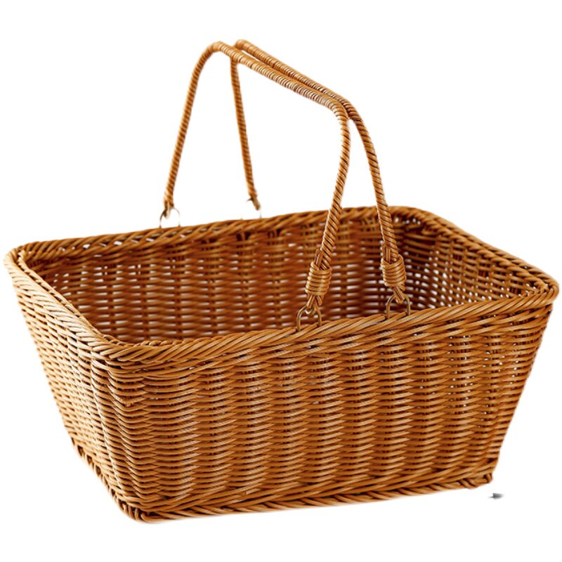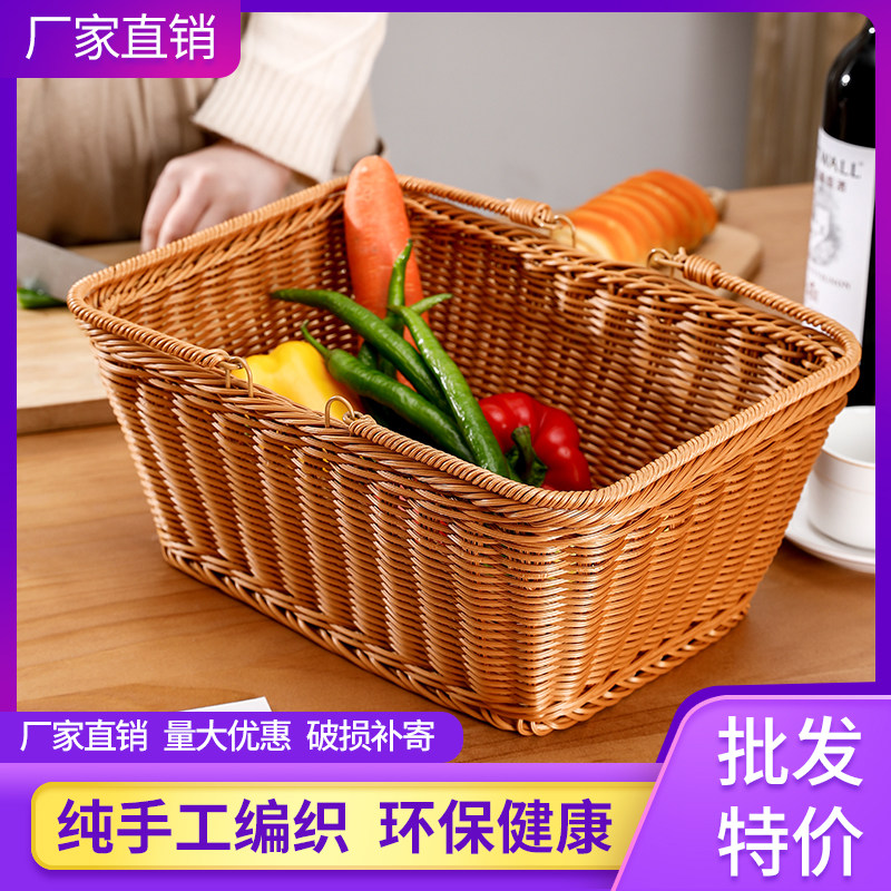 仿藤编买菜手提篮超市购物糖果蔬面包方形整理加固储物编织收纳篮