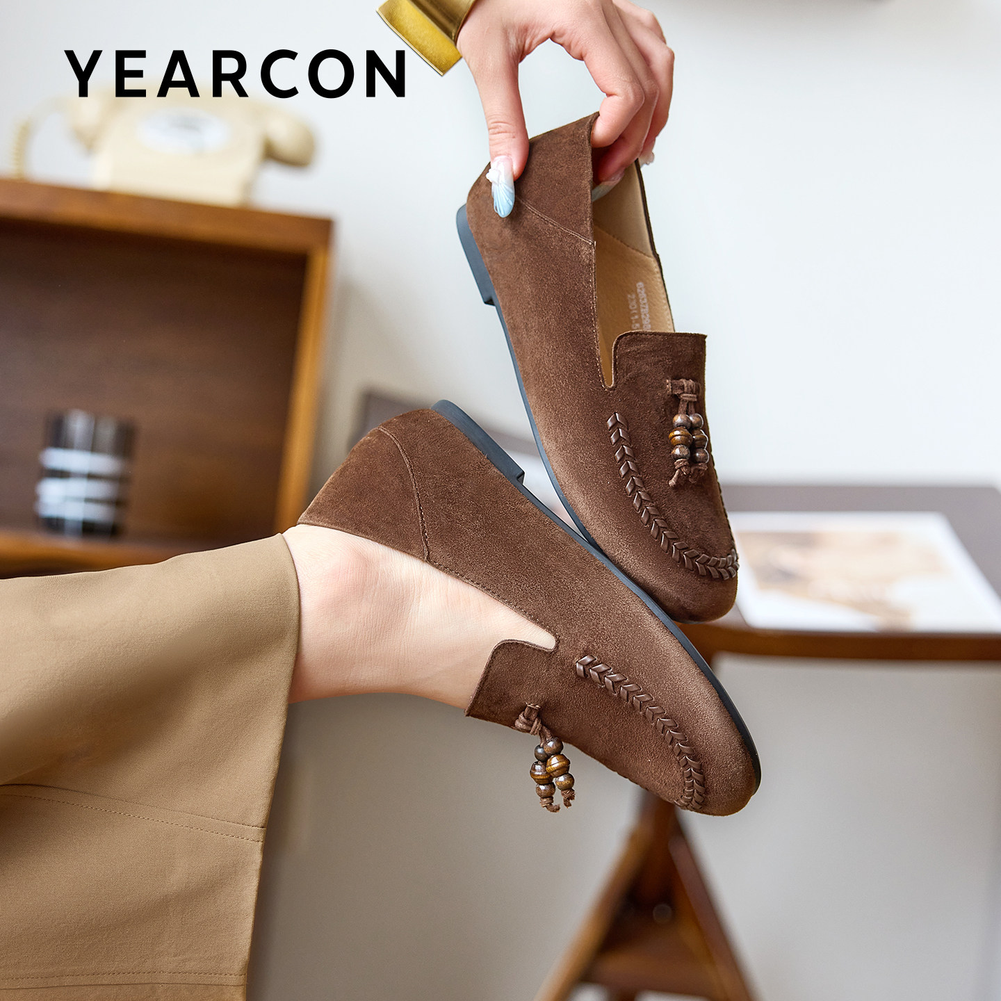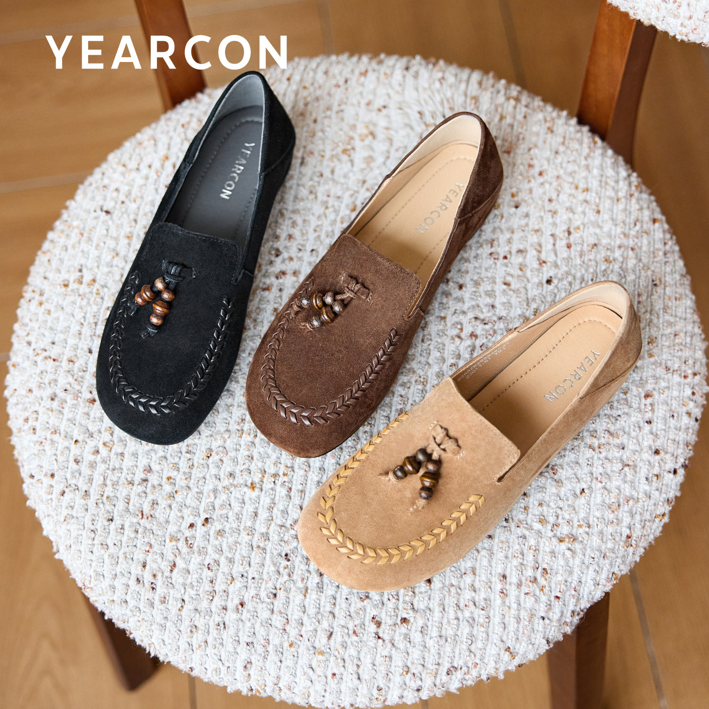 意尔康真皮编织福鞋女2026春季新款小众豆豆鞋软底不累脚单鞋两穿