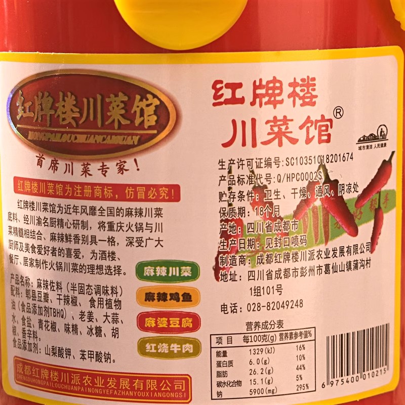 红牌楼川菜馆麻辣调味料908g四川重庆火锅串串麻辣烫底料红油调料