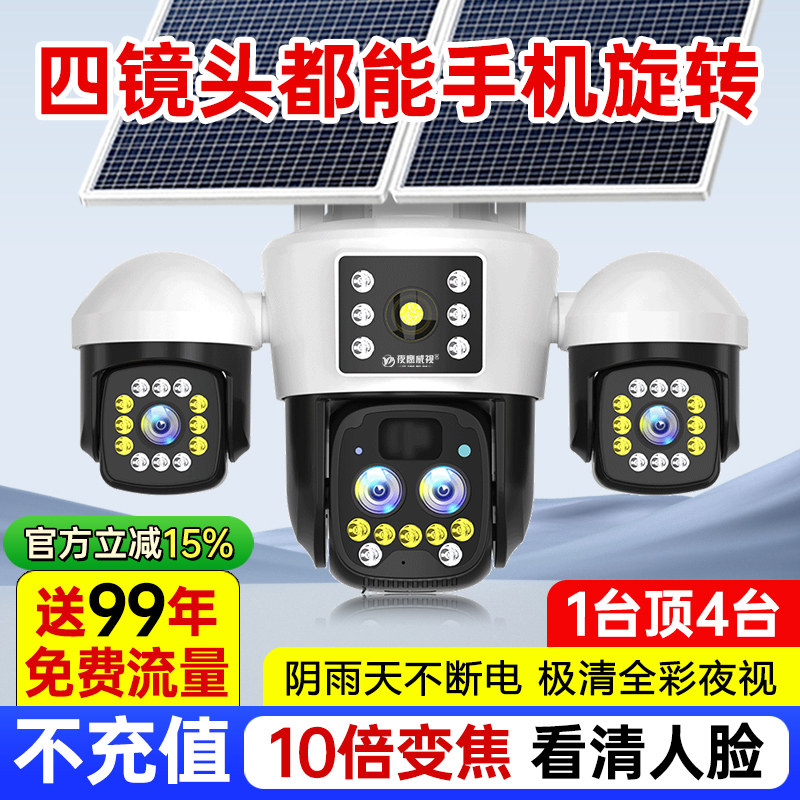 太阳能监控器摄像头360度无死角手机远程室外高清夜视免插电无网