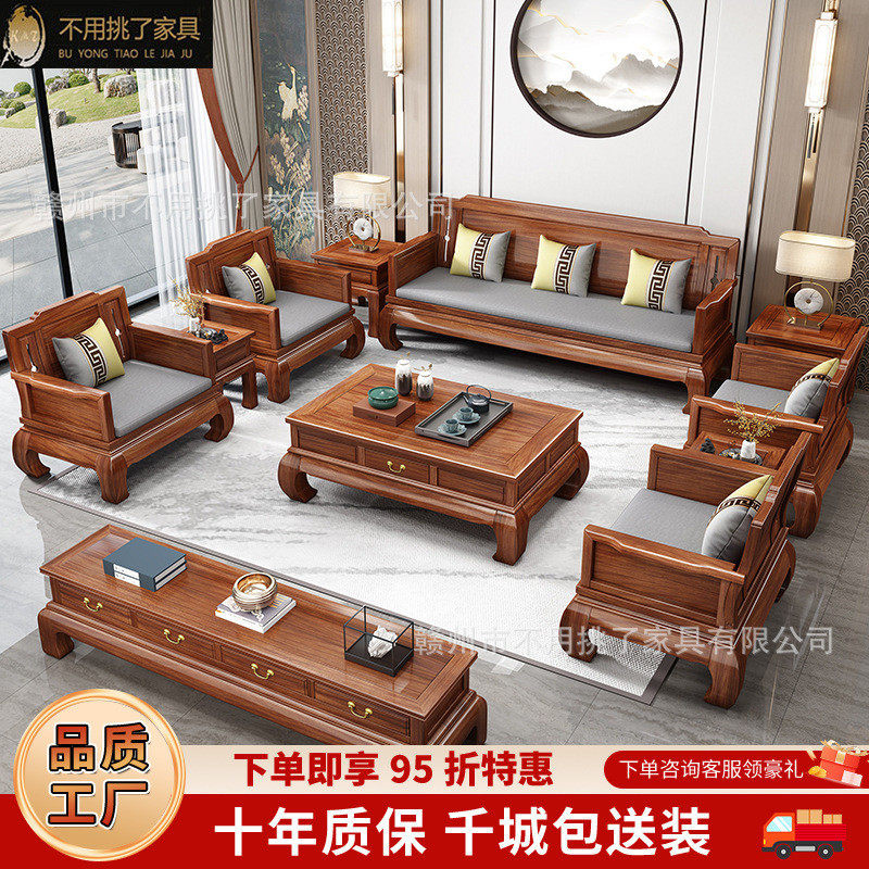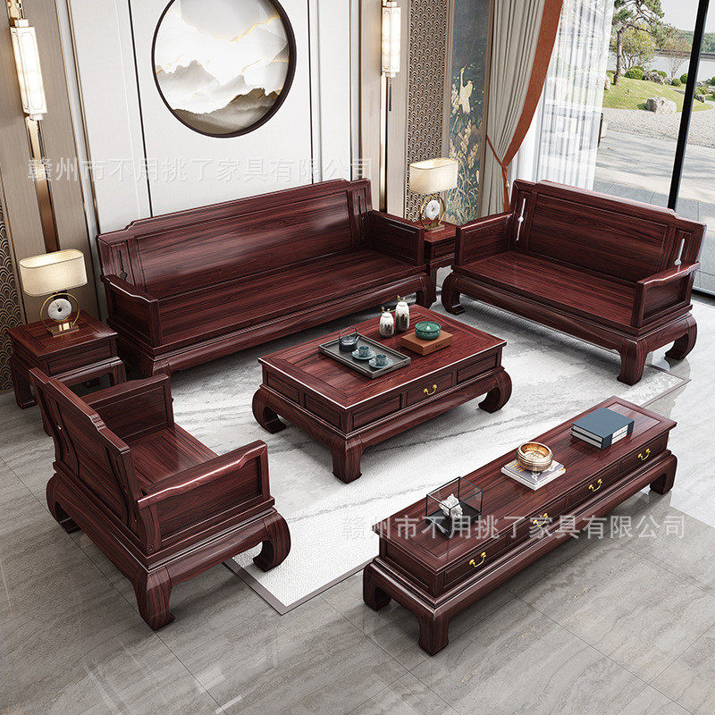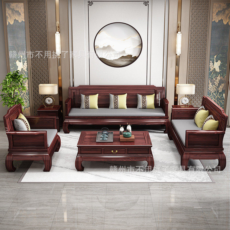 新中式花梨木实木沙发组合大小户型客厅冬夏两用别墅高档国风家具