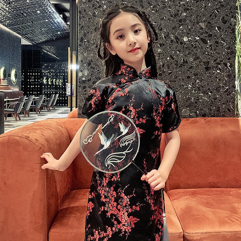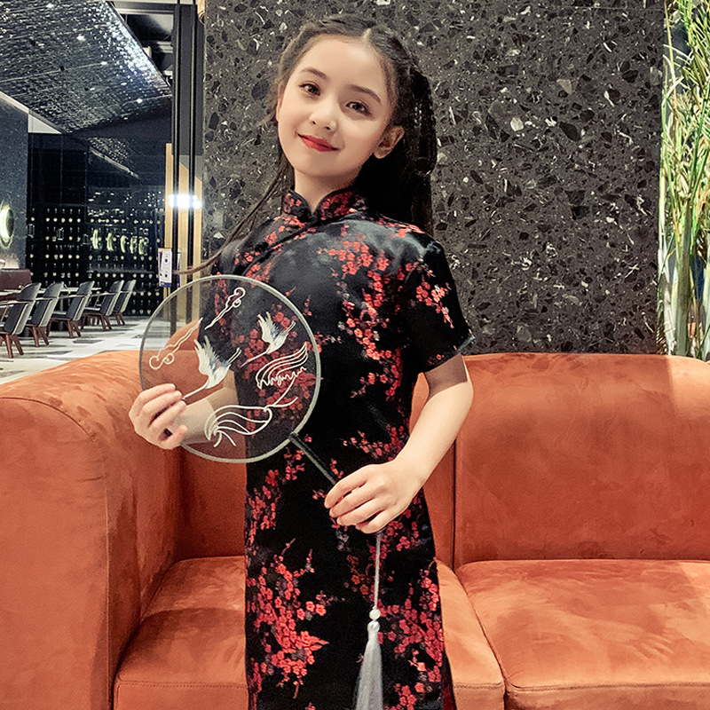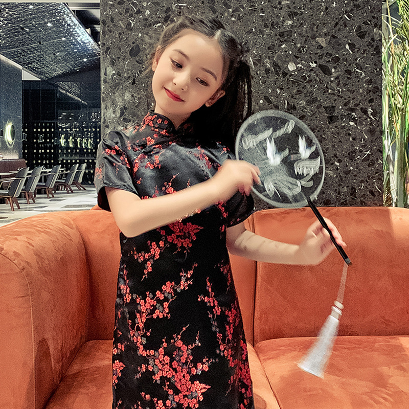 2025新款秋季儿童旗袍洋气公主裙黑色中国风女童连衣裙