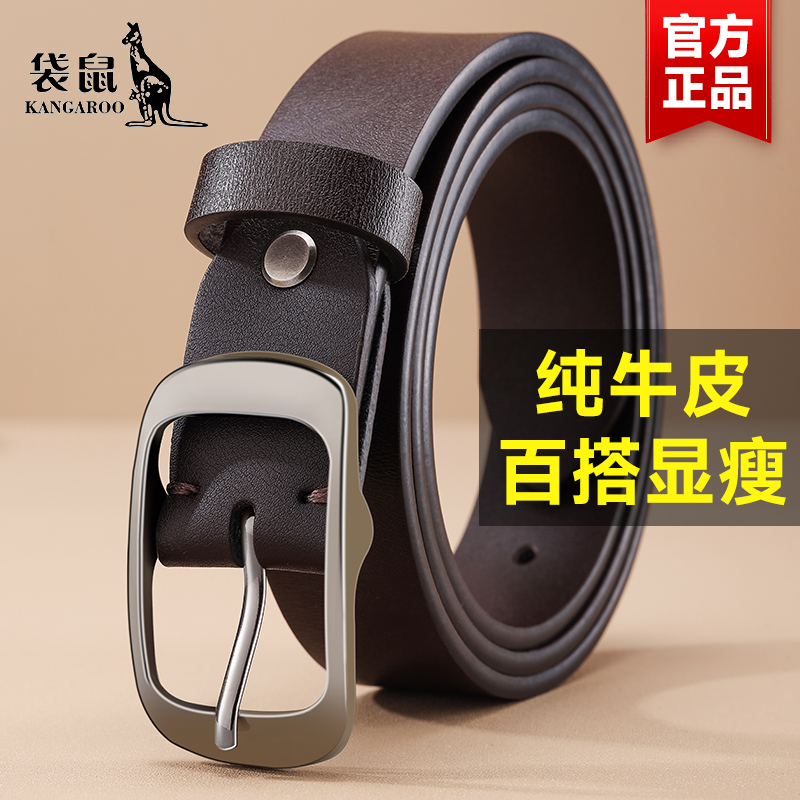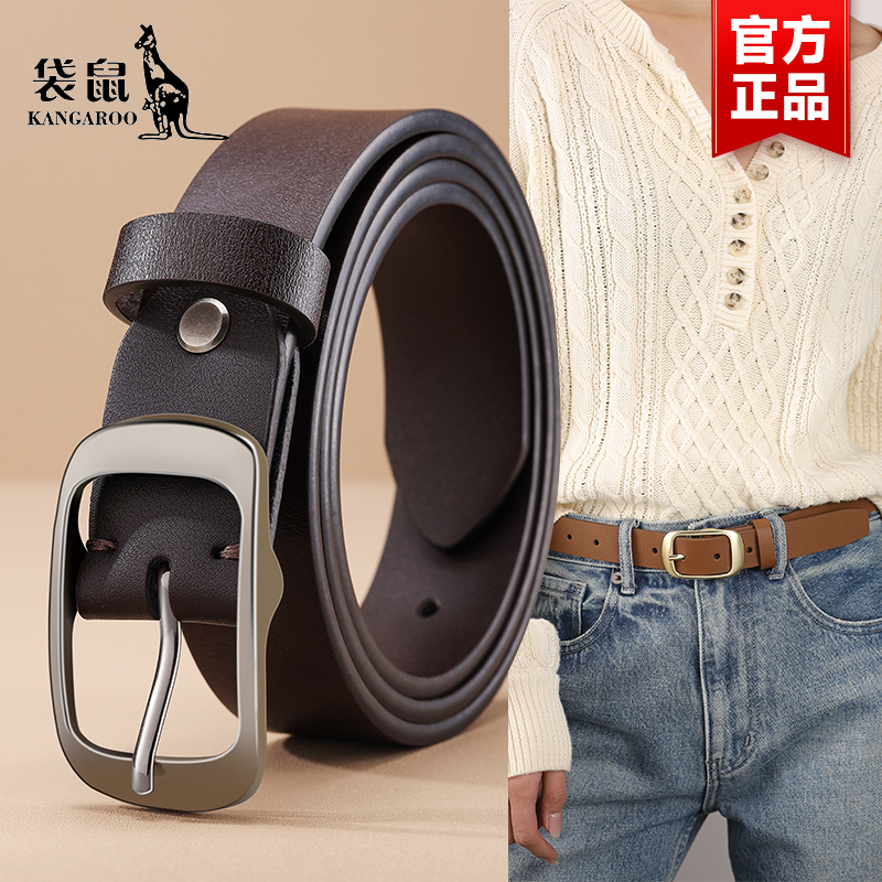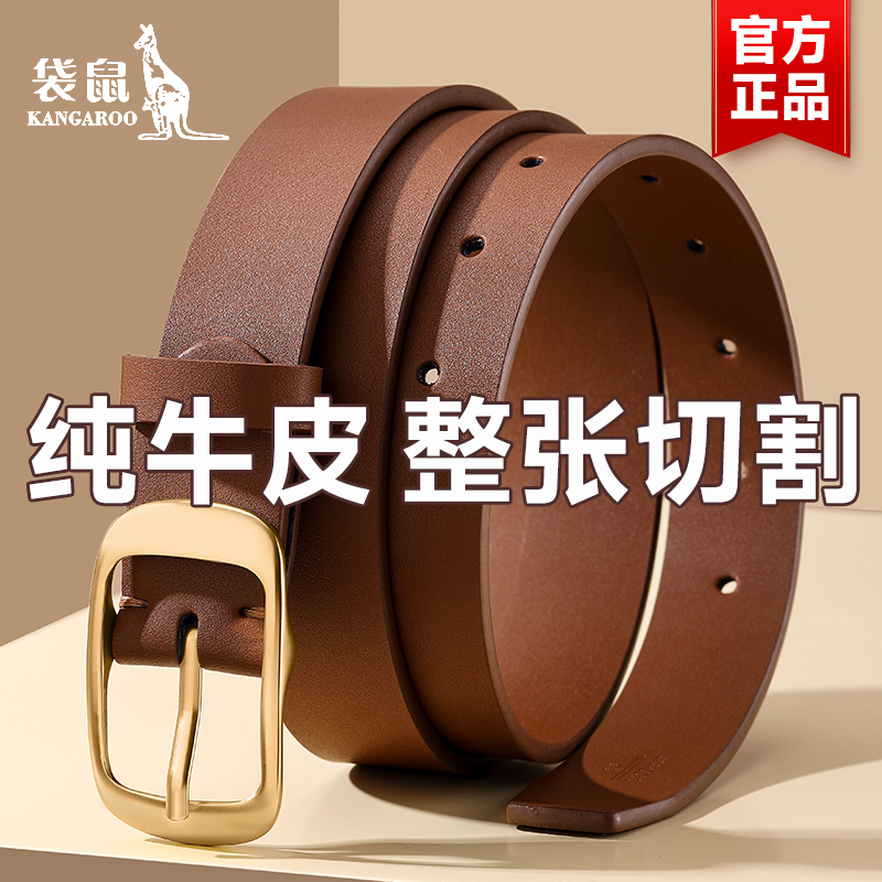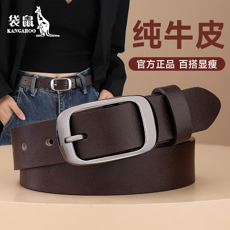 袋鼠皮带女款真皮2025新款时尚休闲高级女士腰带配牛仔裤女式裤带