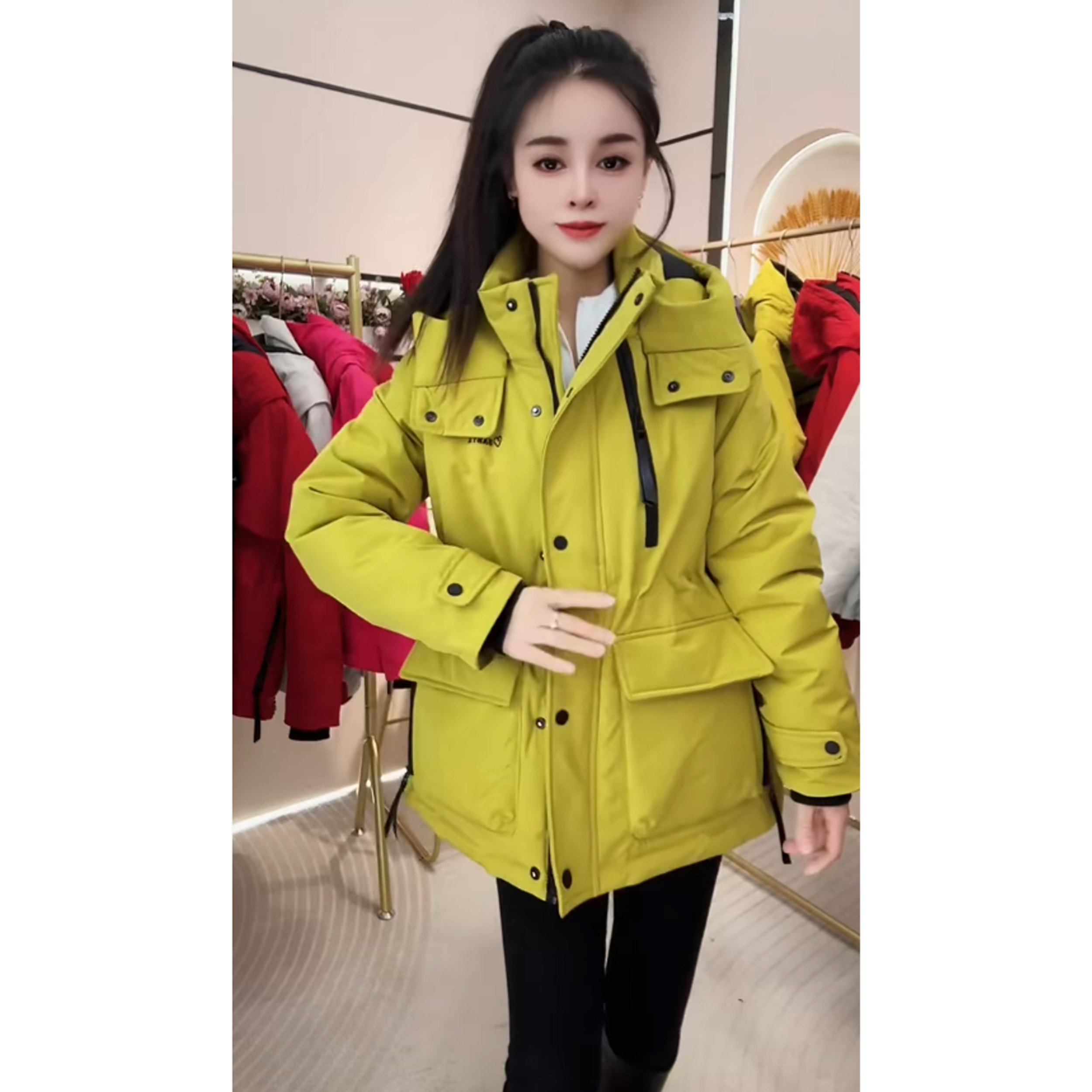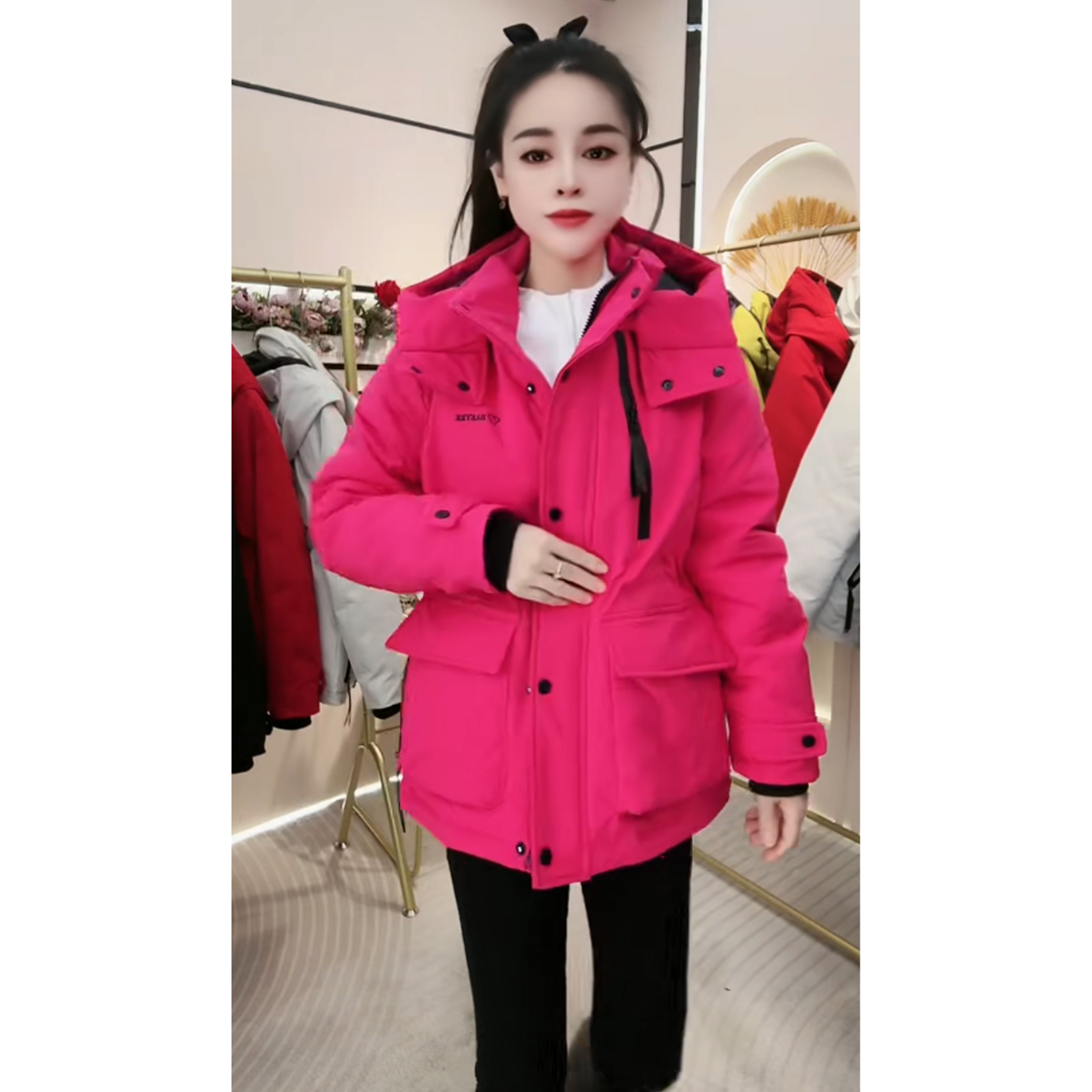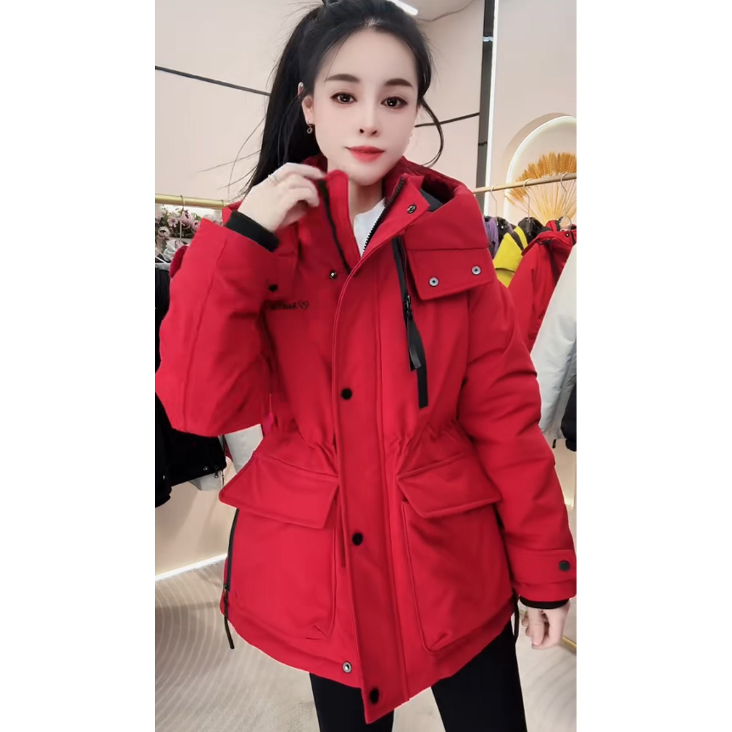 2026工装二棉风衣连帽风衣女中长款收腰显瘦时尚外套白色休闲棉服