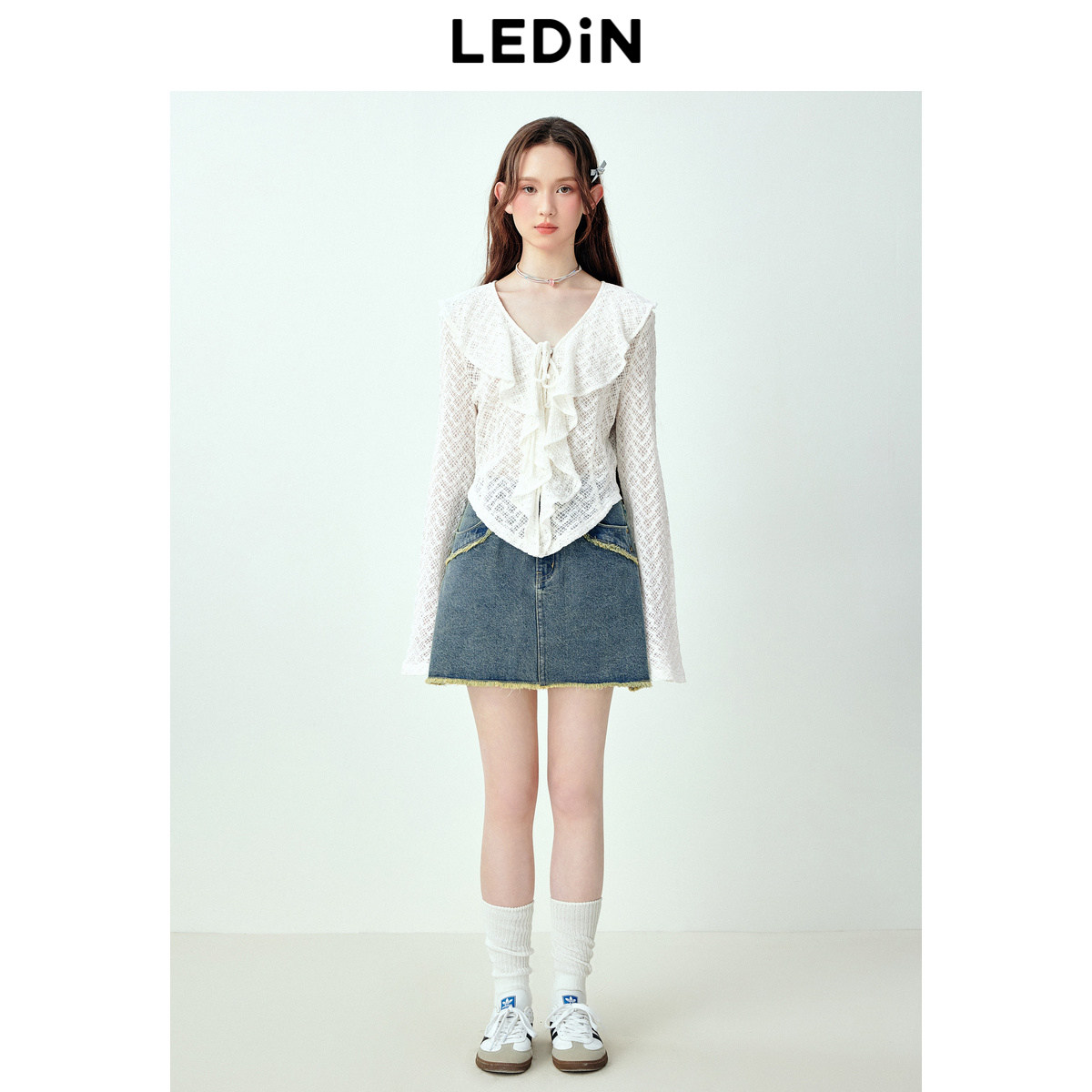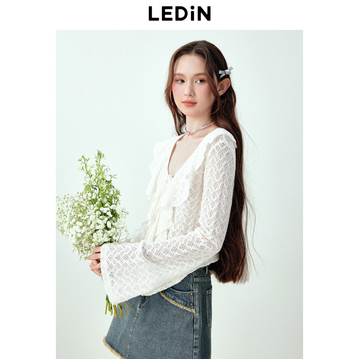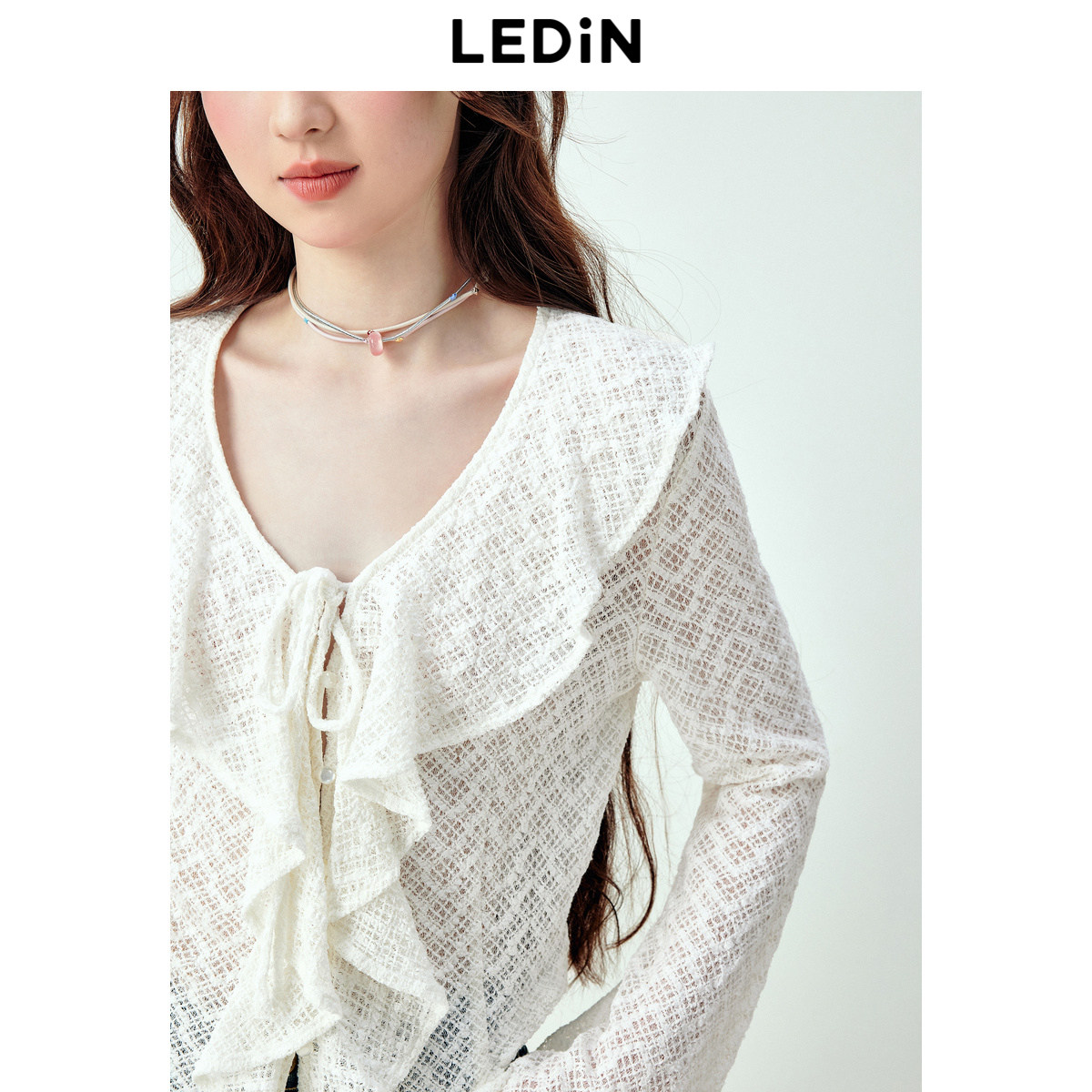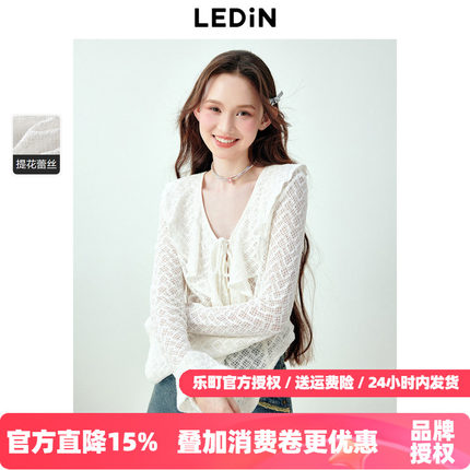 乐町甜美浪漫感木耳边设计蕾丝雪纺衫女秋季新款宽松天丝上衣