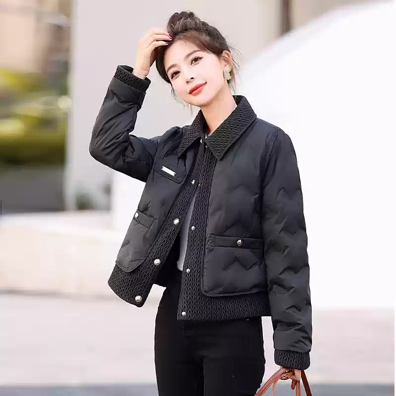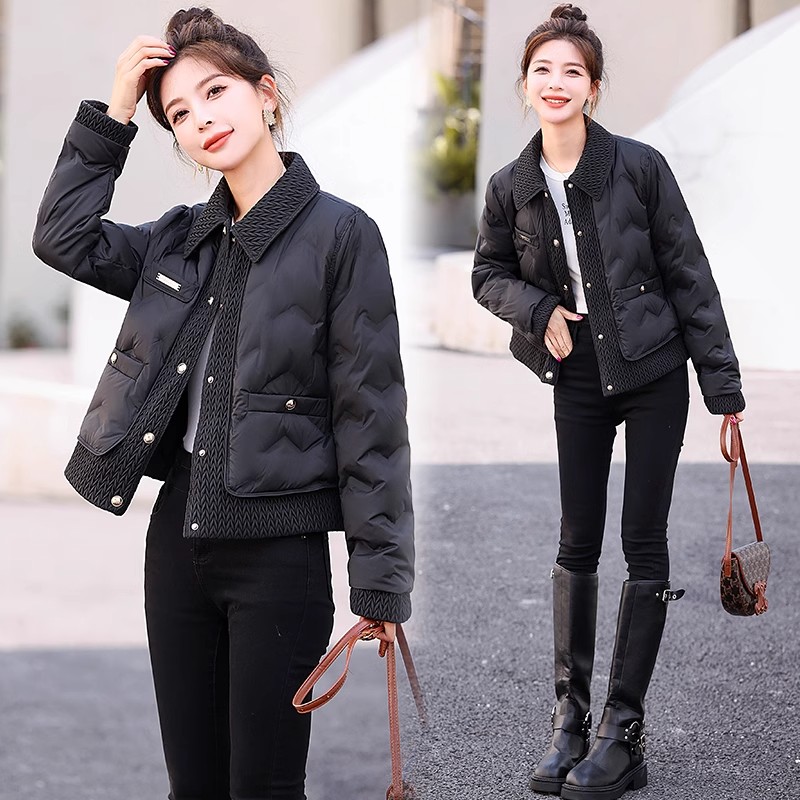 羽绒棉服女短款2024冬季新款法式小香风轻薄款翻领棉衣保暖短外套