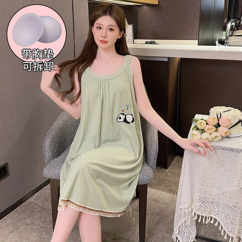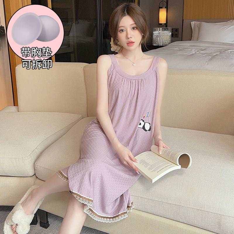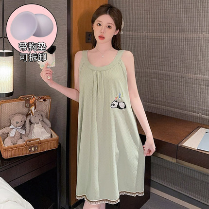 甜美风大码睡裙女200斤夏季纯棉胖MM孕妇宽松吊带裙睡衣加肥加大