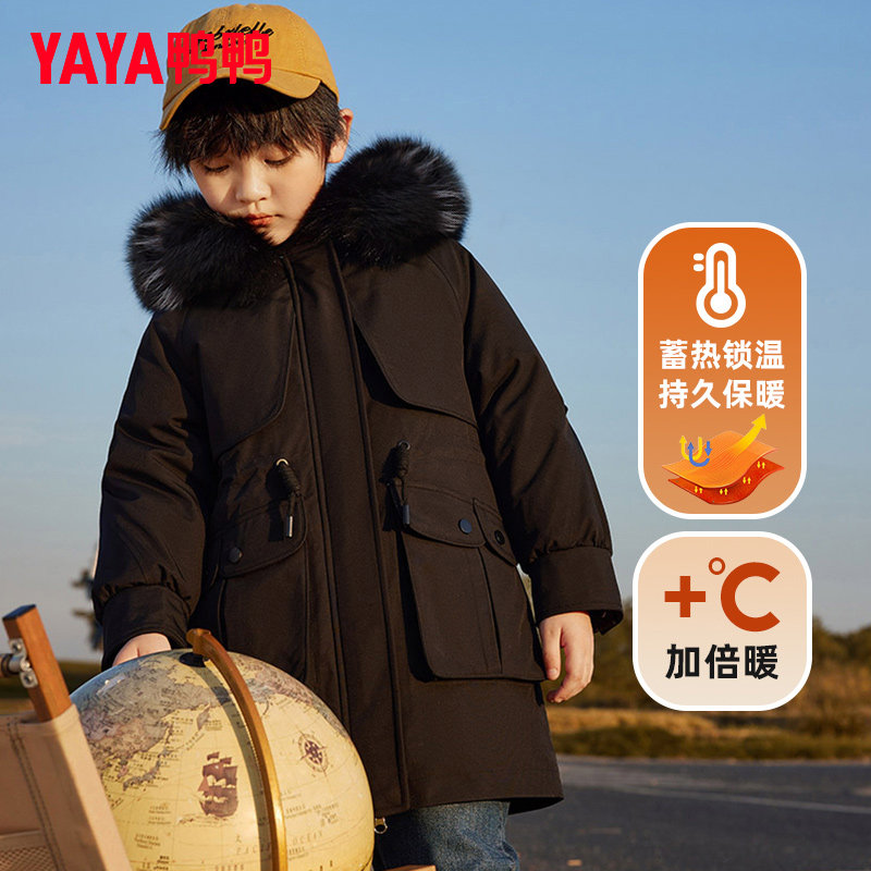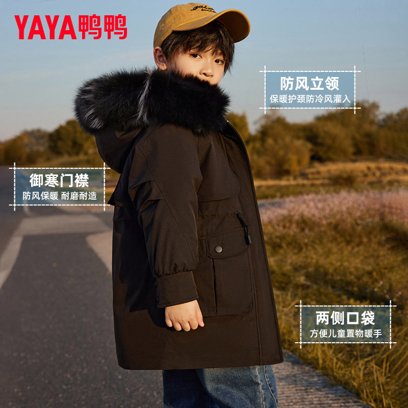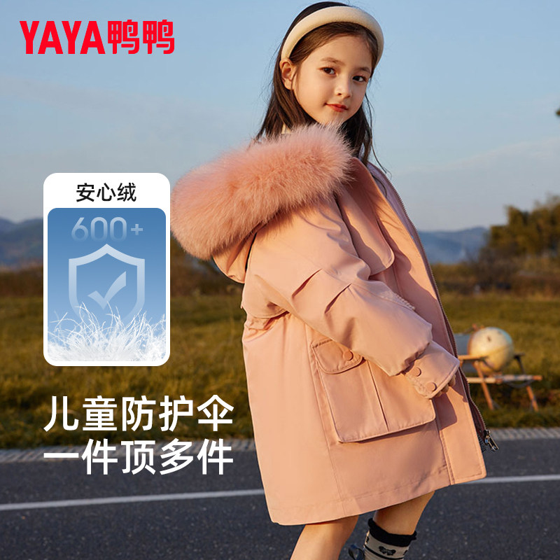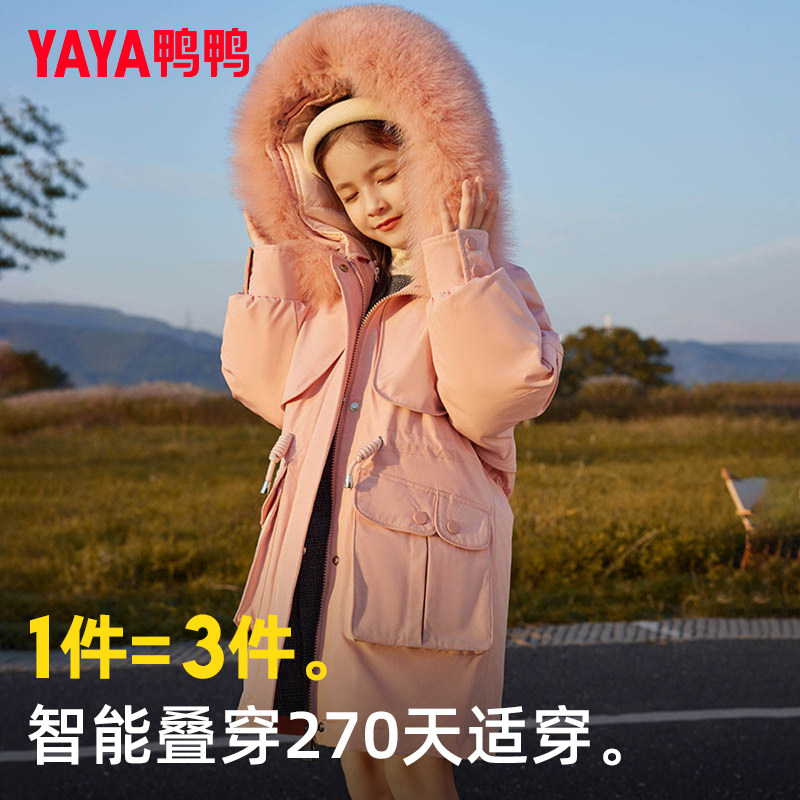 鸭鸭儿童羽绒服男女童中长款大毛领可拆卸内胆冬季中大童装外套WJ