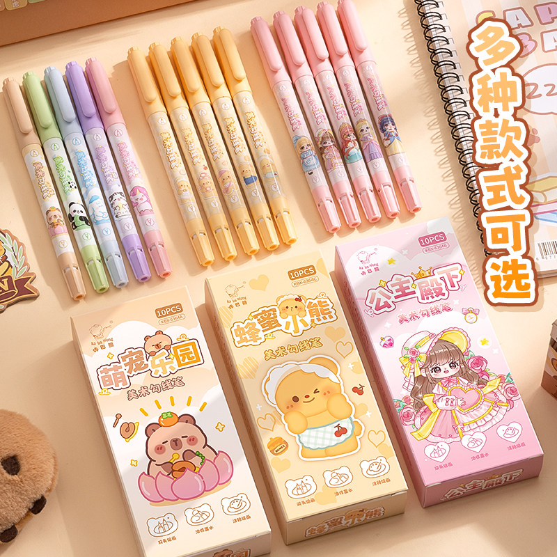 卡皮巴拉双头勾线笔美术专用儿童小学生黑色油性防水马克笔粗细两头幼儿园绘画描边彩色涂码记号笔速干