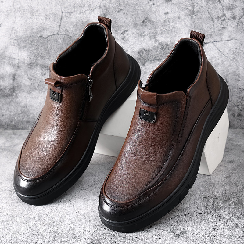 木林森男鞋2025冬季新款爸爸鞋男士真皮加绒保暖高帮棉鞋休闲皮鞋