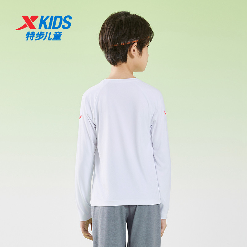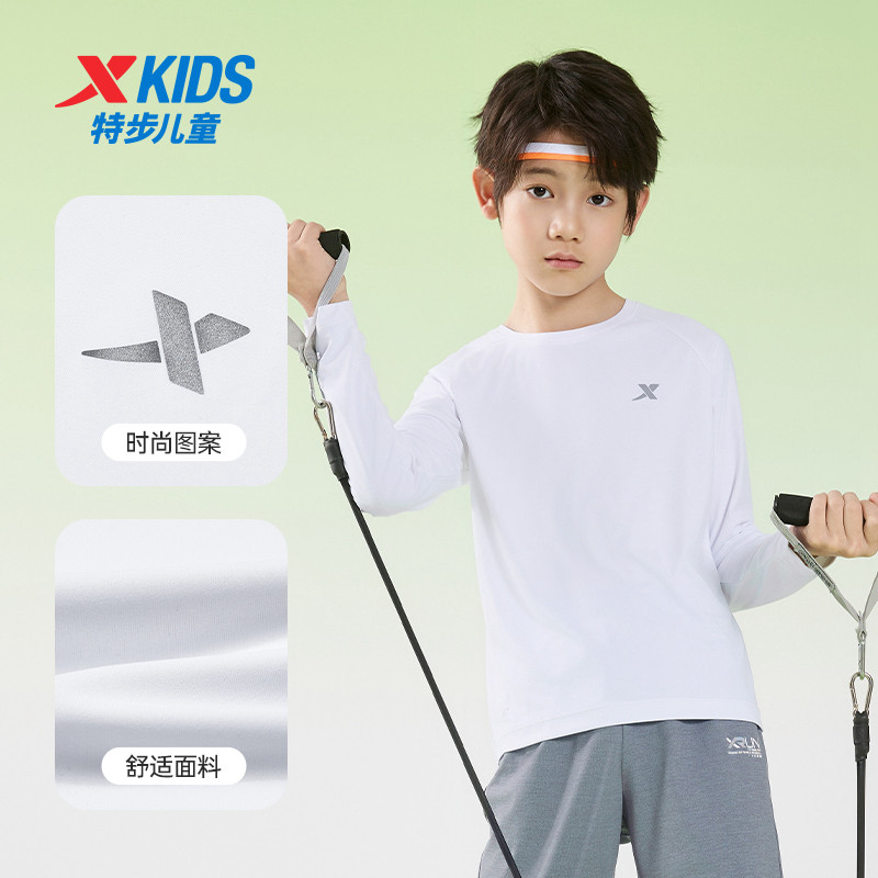 特步童装男童速干长袖T恤春季新款儿童圆领套头上衣中大童运动长T