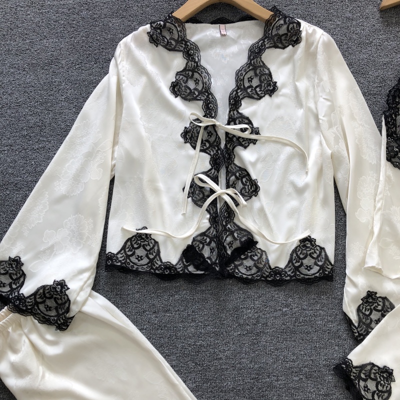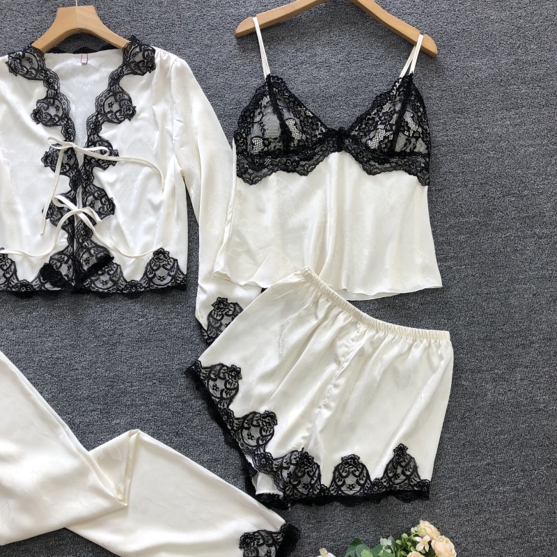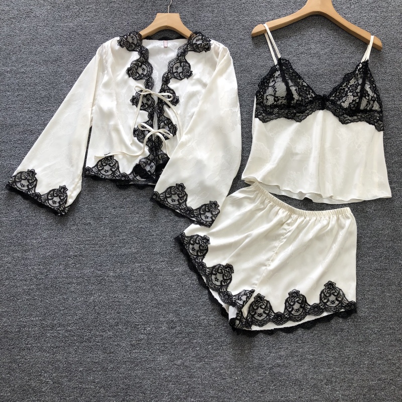 性感睡衣女款春夏季冰丝带胸垫蕾丝花边吊带睡裙家居服套装薄款