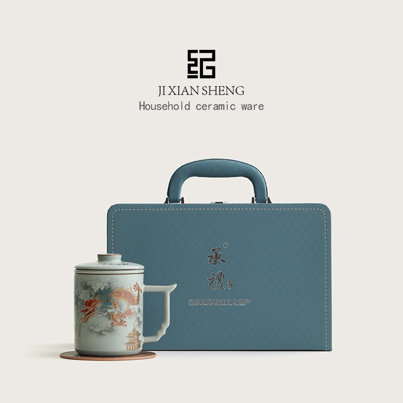 速发汝分鎏金办公泡水杯茶茶窑离陶瓷水杯礼盒送长辈父亲生日礼物