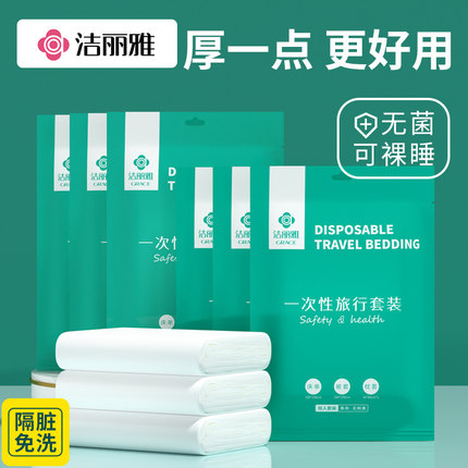 洁丽雅旅行一次性床单被套枕套单人双人酒店隔脏亲肤床上用品加厚