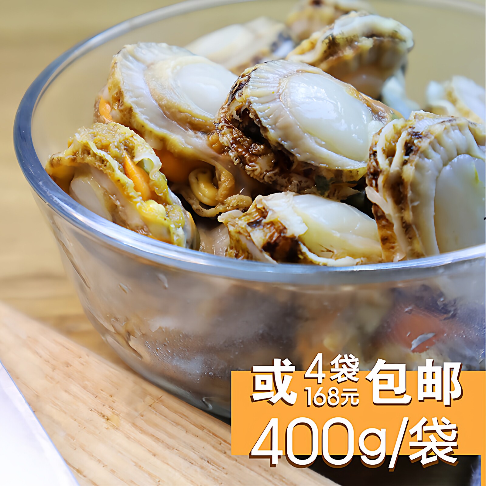 熟冻满黄扇贝丁400g/袋