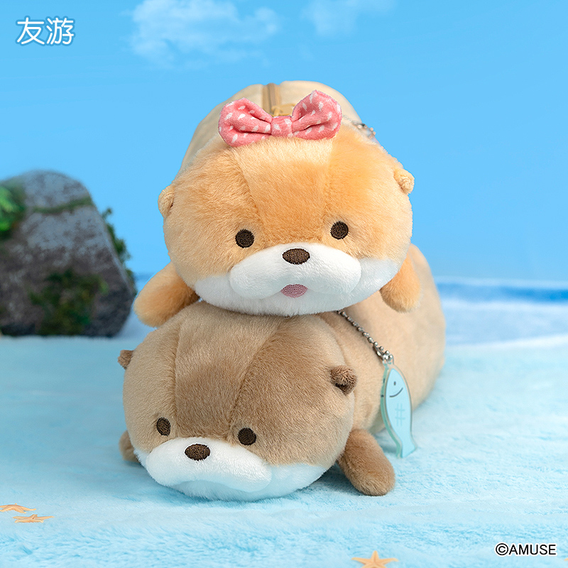 友游正版amuse水獭公仔玩偶笔袋可爱毛绒化妆包文具大容量收纳包