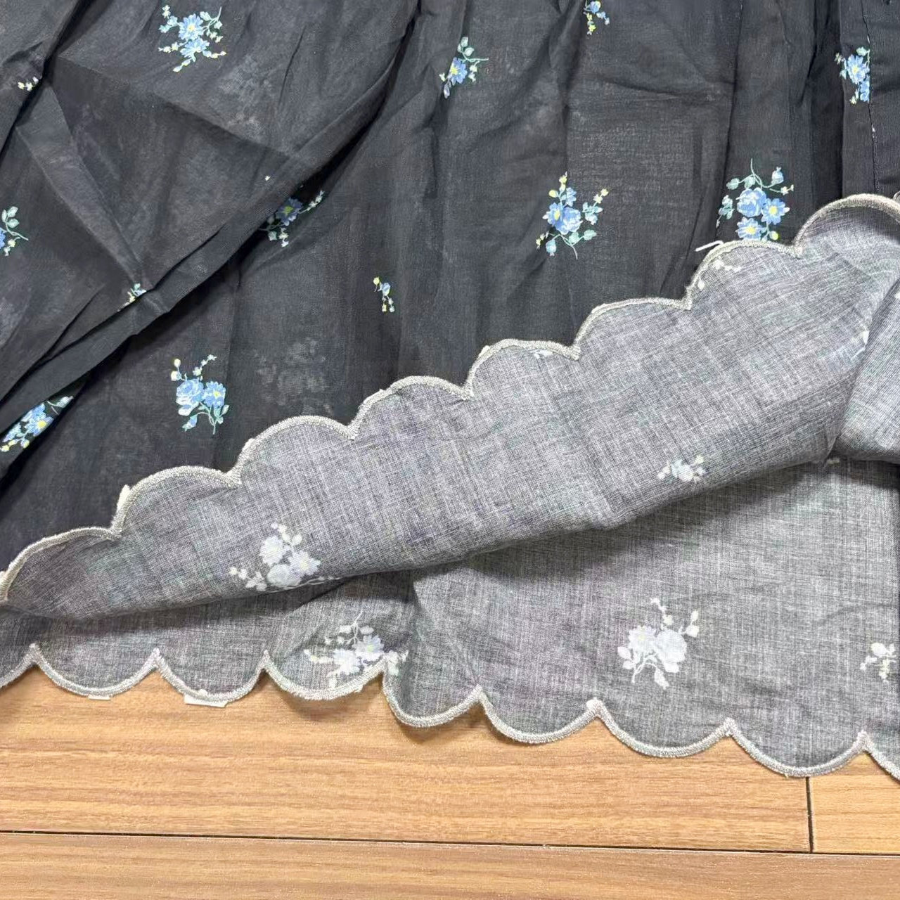 官网压褶波浪边碎花中长款防晒衣女2026春季新款纯棉圆领长袖衬衫