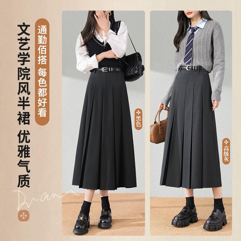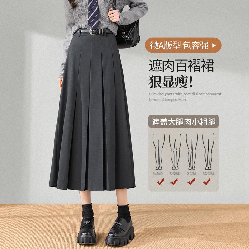 西装半身裙女灰色2025春夏中长新款学院风小个子高腰a字百褶裙子