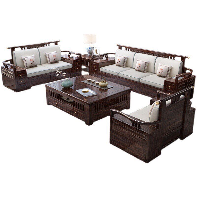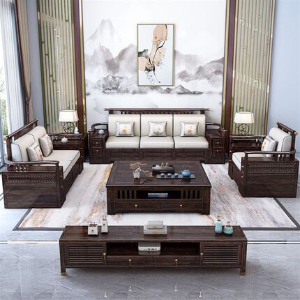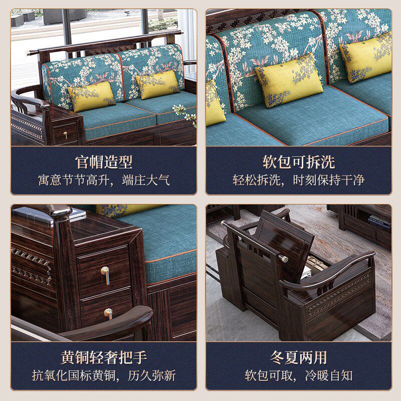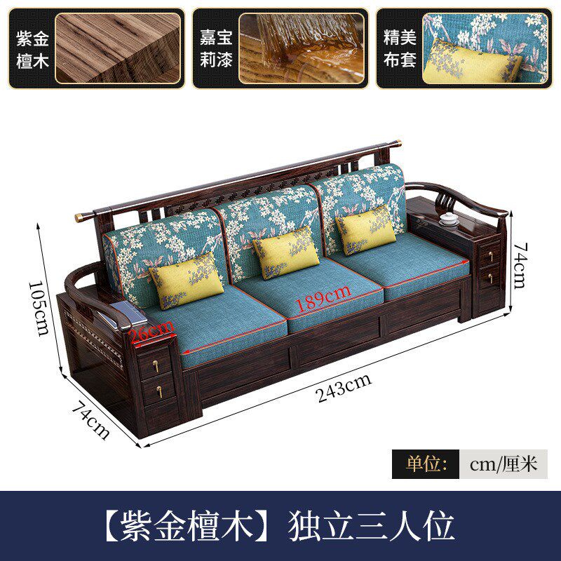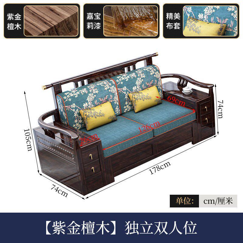 速发新紫式轻奢中金檀木全实木沙发冬夏端用带储物高两家具客厅组